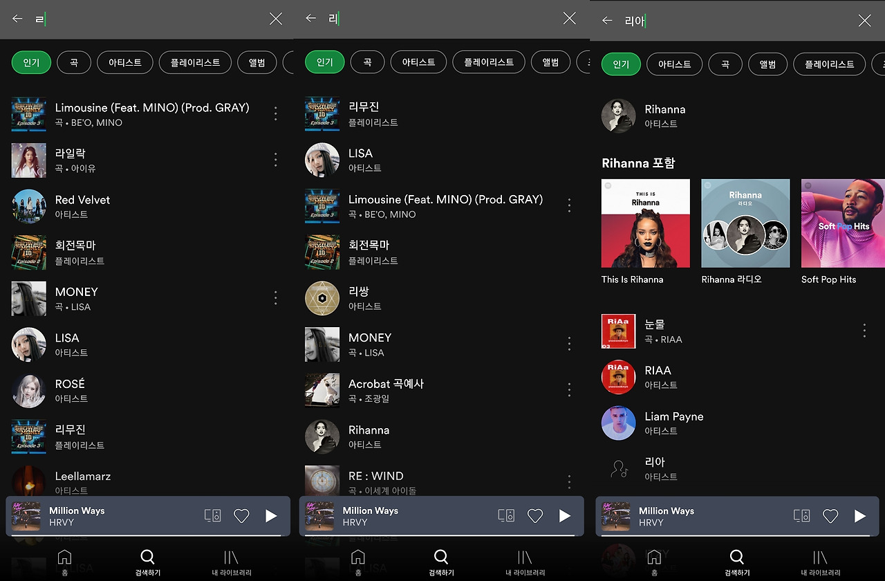 둘째, 스포티파이에 당장 음원을 스트리밍(Listen) 하려는 사용자여도 최상단의 검색 결과에 관심이 크게 없을 수 있습니다. 여러분 중에 ‘노동요가 필요한데, 텐션을 올려줄 음악이 없을까?’하고 음원 스트리밍 서비스에 접속한 적이 있을까요? ‘내가 검색한 이 아티스트 아니면 안 돼!’와 같은 Focused 유형이 아닌, 이렇게 유사한 아티스트, 분위기를 찾는 Open, Exploratory 유형의 사용자들은 원하는 검색 결과를 찾기까지 스크롤을 오르내리거나 이것저것 미리 듣기를 하며 탐색하는 과정에서도 충분히 만족합니다.