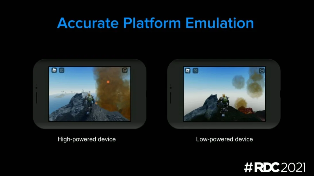 여러 번의 비행 없이도, 로블록스의 플랫폼 에뮬레이션(Emulation) 기능을 통해 여러 사양의 모바일 기기 즉 하드웨어에서의 구동 환경과 경험을 바로 지금 Baseplan의 Test모드에서 동일하게 경험할 수 있습니다. 저전력, 2G 폰에서 고객이 어떻게 경험할지 미리 테스트 가능한 것입니다.