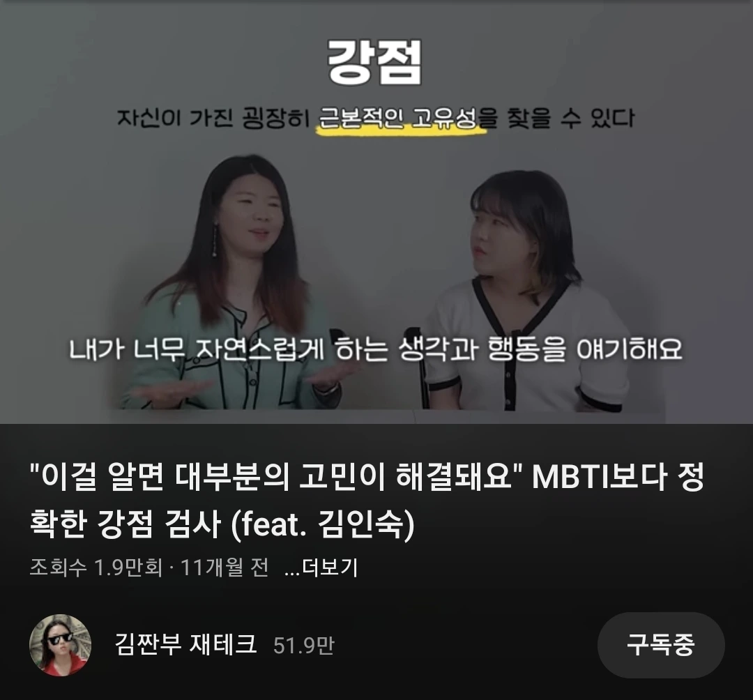 김짠부 재테크 | (...) MBTI보다 정확한 강점 검사 영상