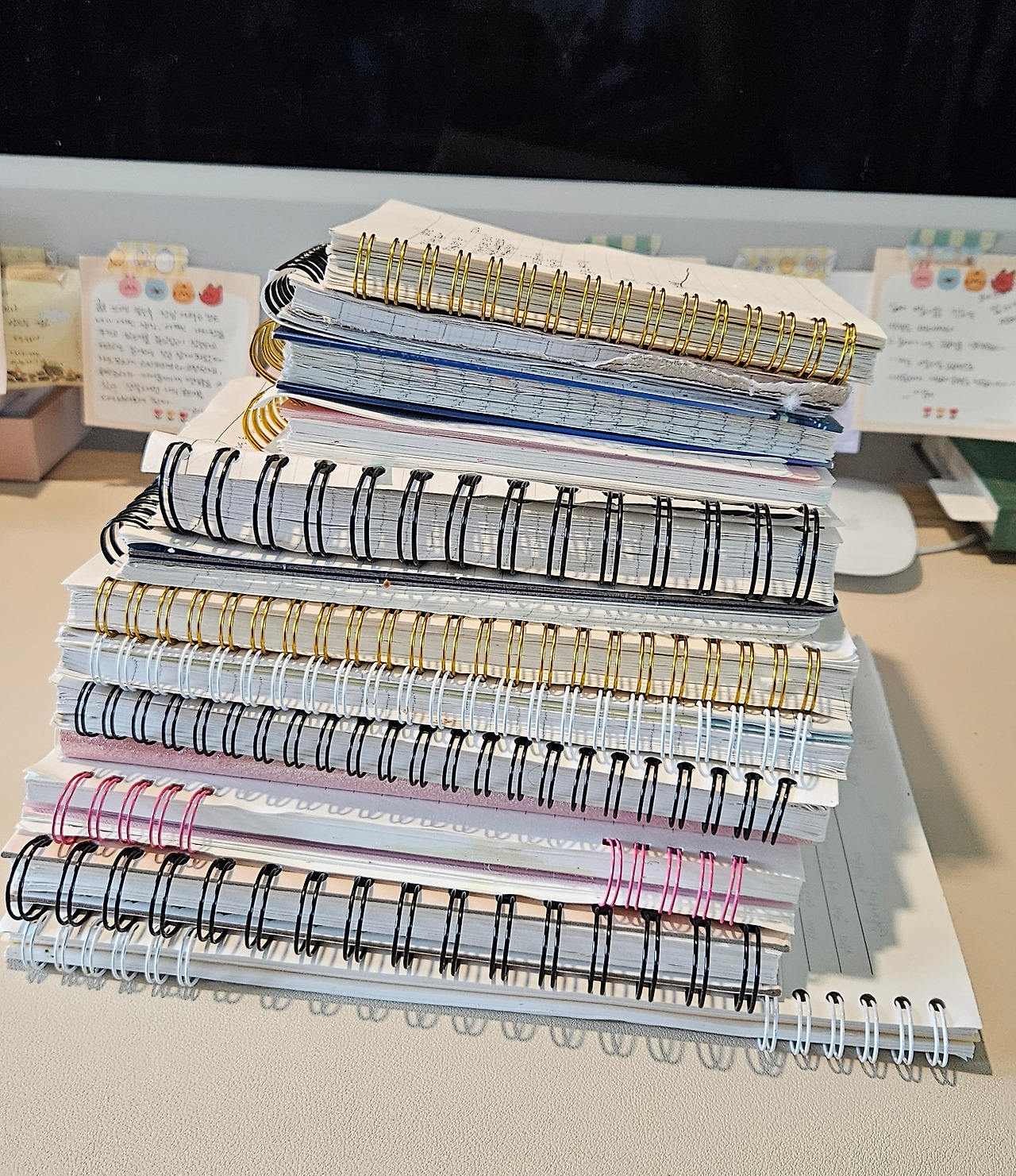 이 노트들은 작년부터 사용하던 건데 편한 공책에 떠오르는 생각이 있으면 무작정 적어본다.