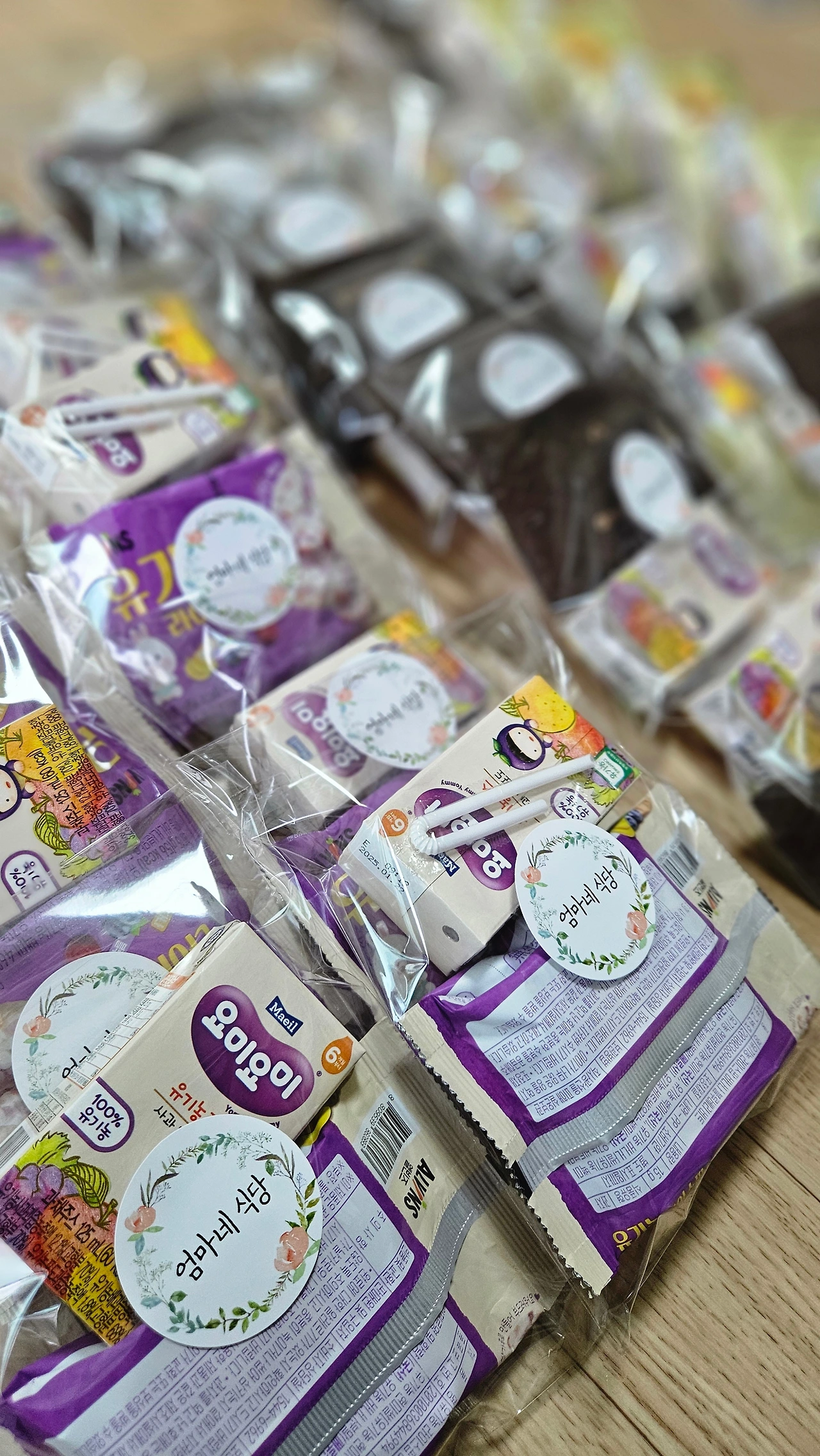 50명의 친구들의 간식도 준비하고 직접 스티커도 제작해서 붙여주었다.