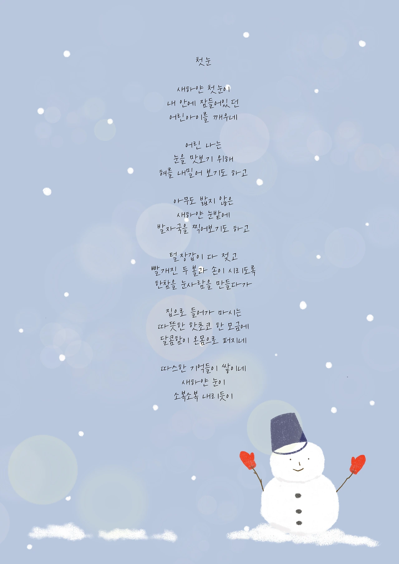 어릴 적 눈 오면 무조건 나가서 덩달아 신난 친구들과 얼굴이 빨개질 때까지 놀고