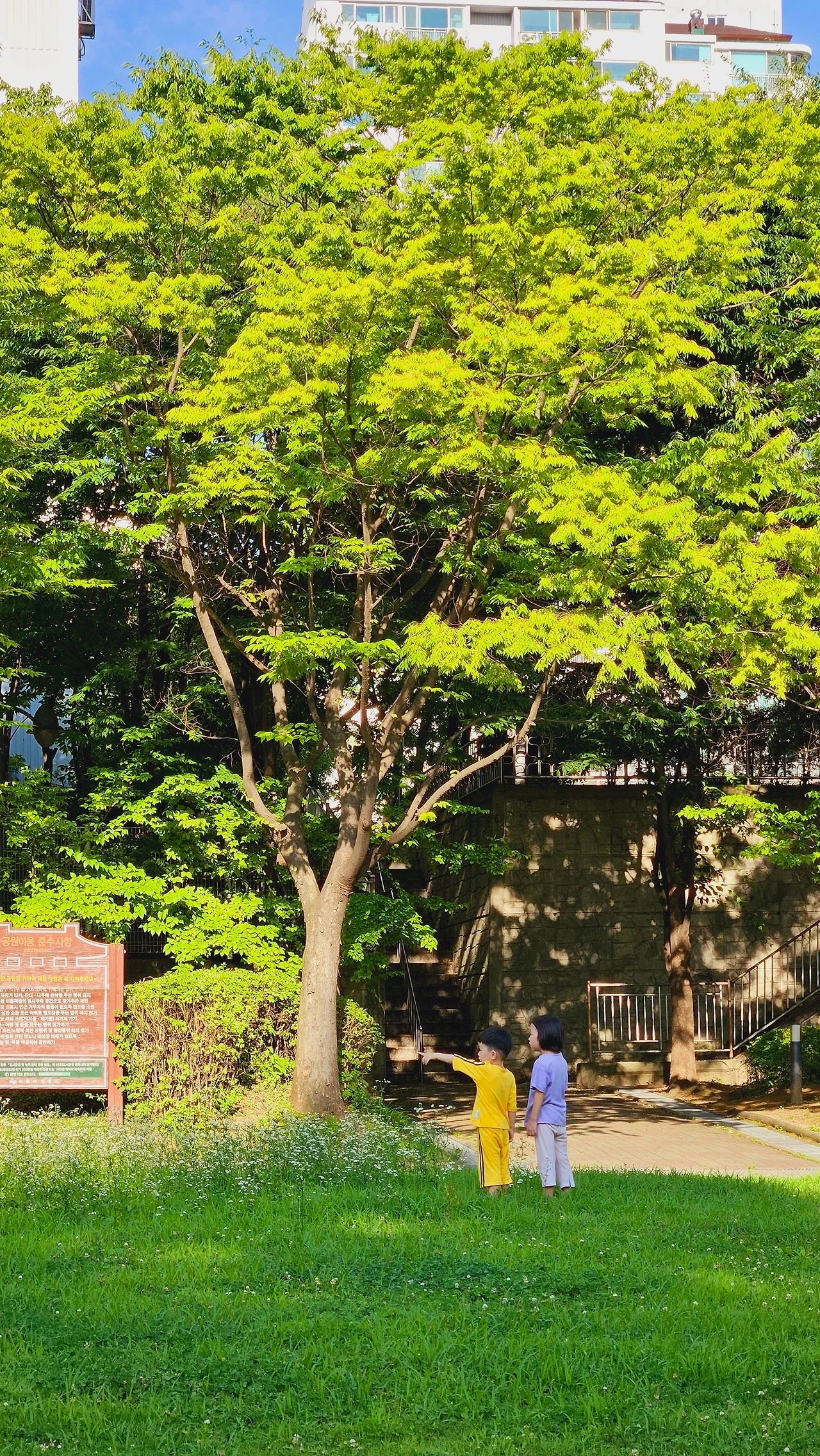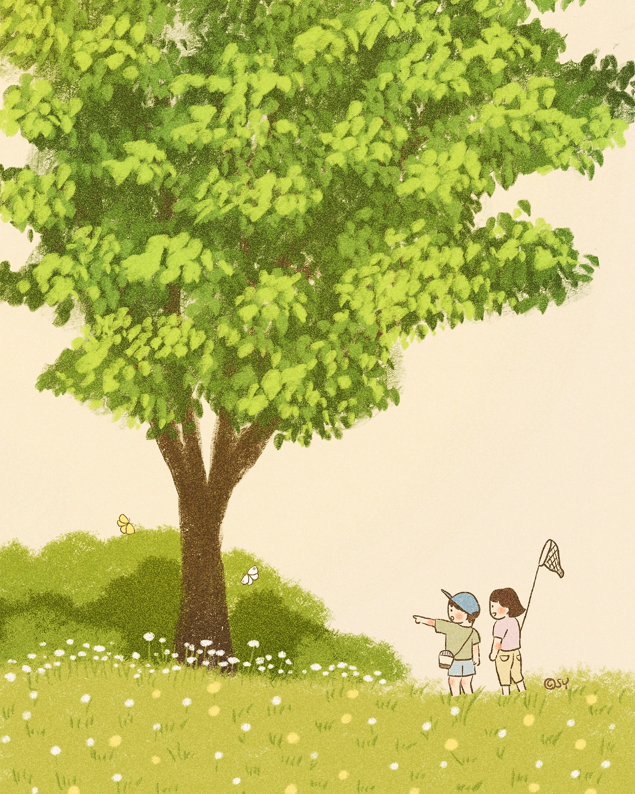 이 그림은 아이들과 공원에서 잠자리 잡는 모습이 풍경이랑 예뻐서 그리게 되었다.