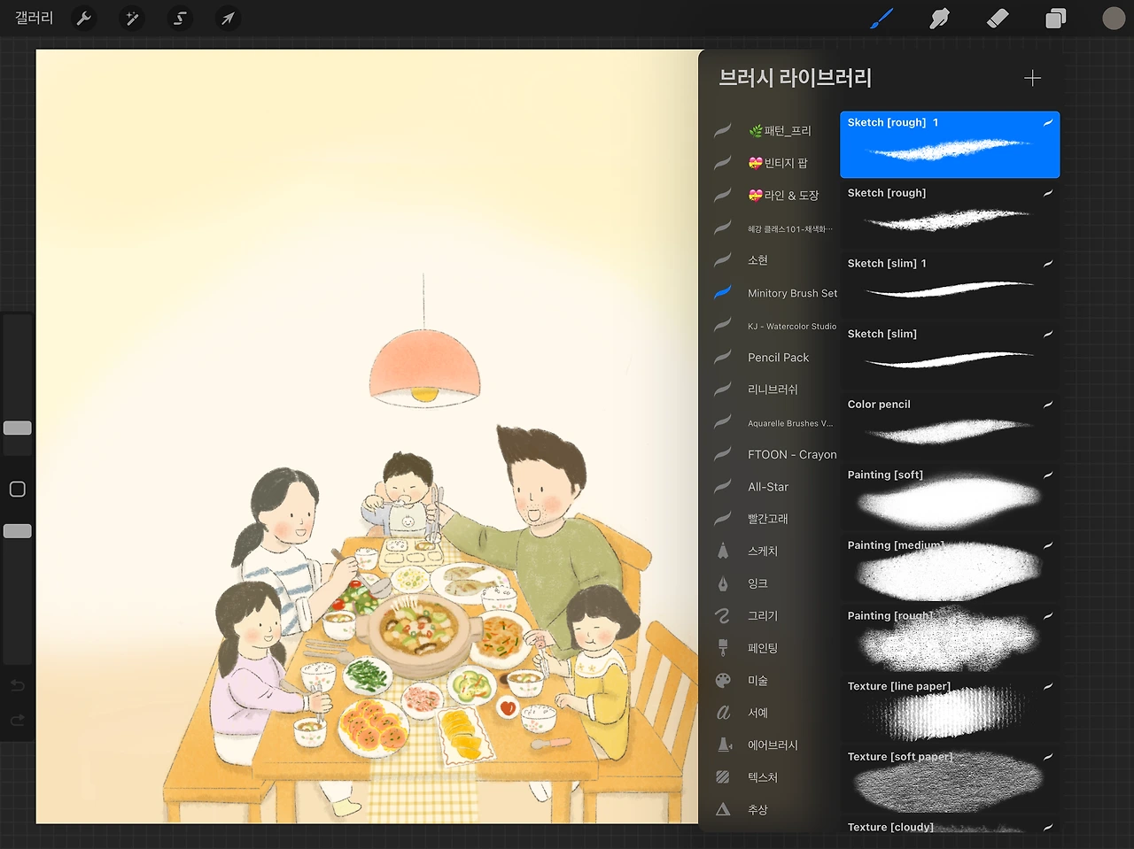 스케치는 손그림 느낌이 났으면 해서 연필 브러시를 사용했고