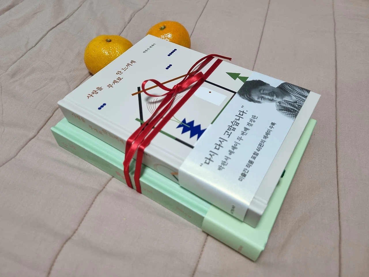 자신을 위해 새 책을 산 적 없는 엄마에게, 실용성을 중시하는 엄마에게, 겉치레를 못하는 엄마에게 나는 포장하지 않은, 충분히 예쁜 표지로 만들어진 책을 선물했다. 까만 봉지에 들어있던 귤 두 개와 함께.