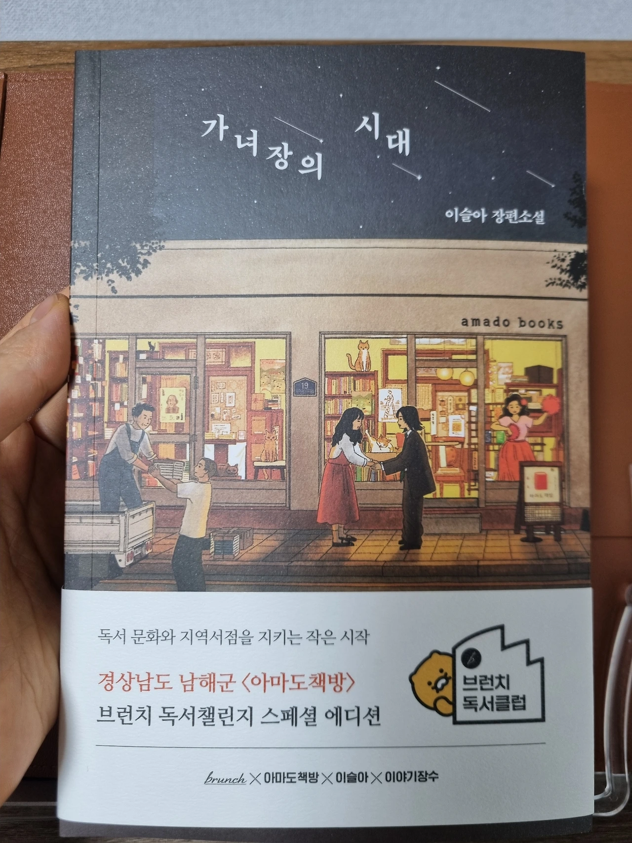 그러니까 이것만으로도 큰 수확인 셈인데, 독서챌린지 이벤트에 당첨되어 브런치팀으로부터 선물을 받았다. 키링과 자석 책갈피까지 동봉되어 온 이슬아 작가의 <가녀장의 시대>. 기념으로 독서대에 살포시 올려두었다. 친구에게 선물 받았던 북커버로 소중히 감싸서 읽어야겠다.