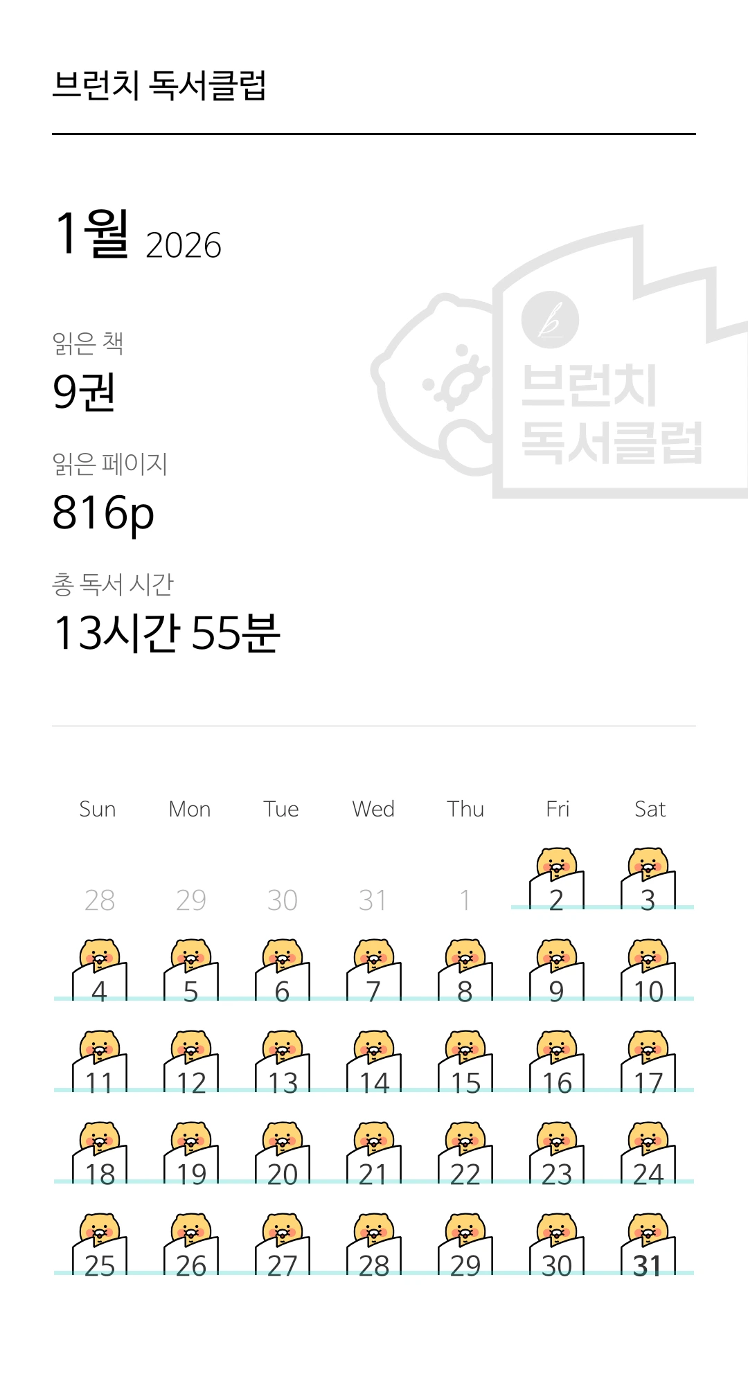 어느덧 시간이 지나 한 달을 채웠다. 체감상 흐르기만 하던 시간을 채웠다는 기분은 기실 오랜만이었다. 운동장을 십오 분씩 뛰던 것보다 훨씬 쉽게 채웠다. 게다가 어플로 십분, 이십 분 기록한 시간보다 앞뒤로 더 많은 시간을 독서에 할애했다. 주로 읽었던 책이 뒷이야기가 궁금해지는 소설이라서 자연스레 독서량이 늘었다.
