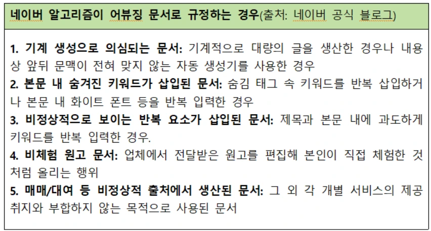 상위노출을 위해 내가 발행한 글이 누락되지 않으려면, 체험단이 제시하는 기본적인 가이드를 준수하면서도 네이버가 경고하는 어뷰징 문서가 되지 않도록 주의해야 한다. 어떻게 보면 네이버가 갑인 것 같지만 결국 네이버도 검색자, 즉 플랫폼 사용자들을 생각하며 정책을 시행할 수밖에 없는 입장이다. 그러니 네이버에게 까이지 않으려면 결국 사용자를 고려해야 한다. 콘텐츠 범람의 시대에서 사용자가 오래오래 머무는 글, 결국 양질의 글만이 살아남을 것이다.