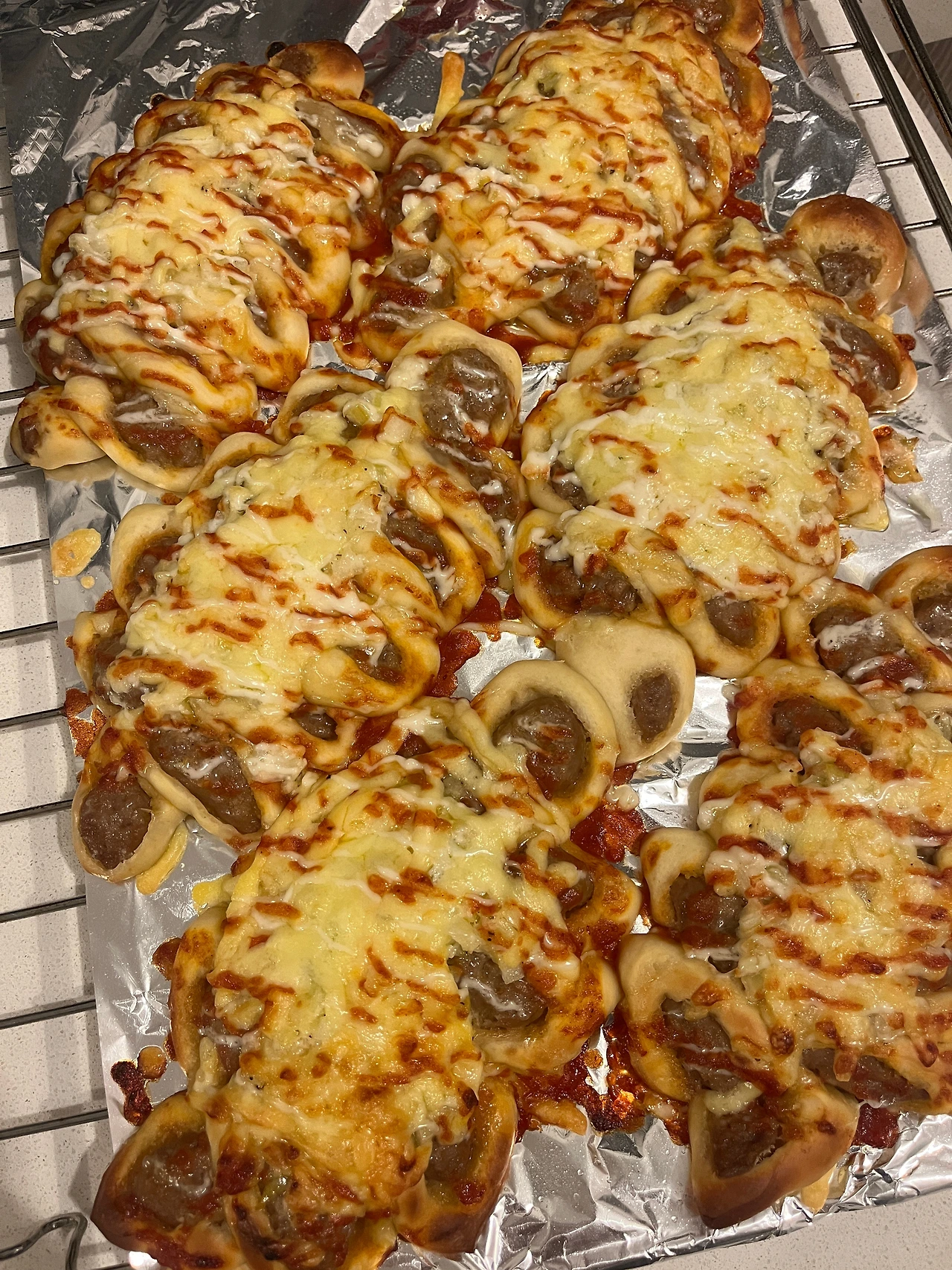 서툴지만 만들다 보니 우리가 아는 피자빵 모양이었다.