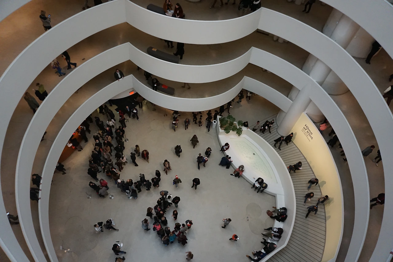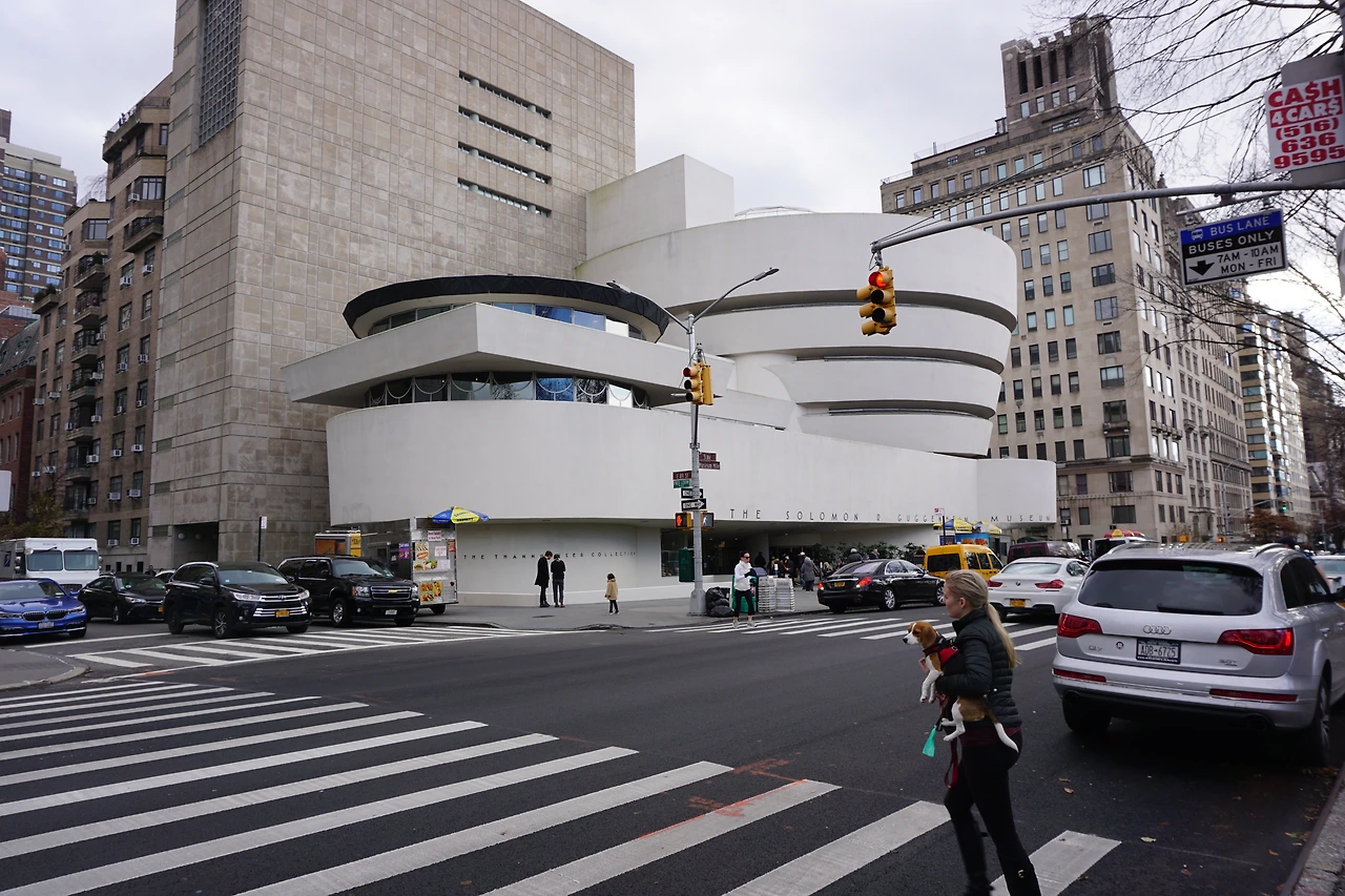 구겐하임 미술관. 프랭크 로이드 라이트라는 건축가가 돈 많은 사업가 구겐하임의 fund로 지은 현대 미술관. 이 건축가는 건물이 유기체로 지어져야 한다는 믿음으로 미술관을 하나의 살아숨쉬는 작품으로 지었다. 주로 현대미술이 전시되어 있어 감상은 보고 느끼는 것으로.