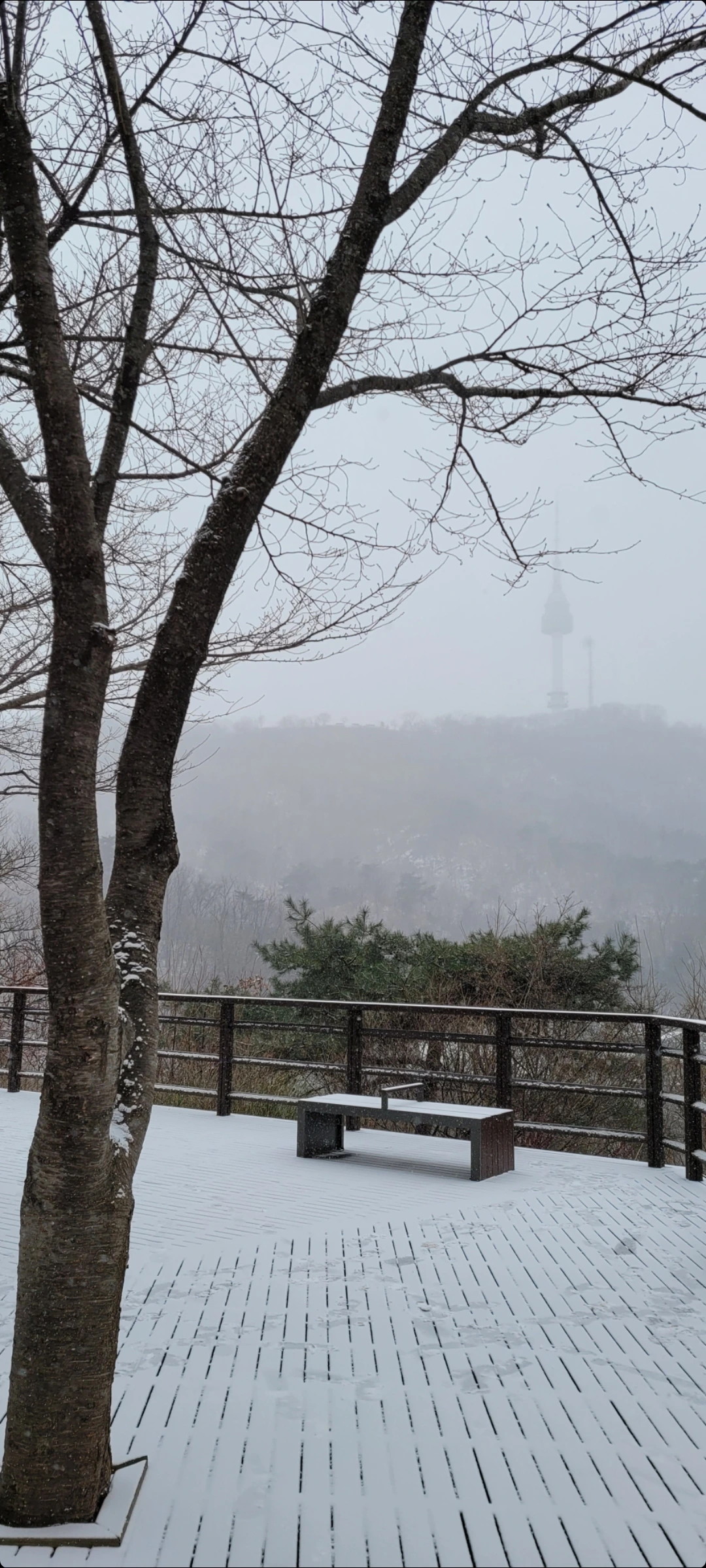 사람이 있거나 없거나 상관없이 그 자리에 있는 남산 커피 트럭. 사람이 한 명도 없는 모습을 생전 처음 본 남산 팔각정. 남산에서 바라본 관악산 정상의 불꽃 모양 봉우리. 늘 바라보며 미세먼지 정도를 측정하던 인왕산, 북악산, 북한산, 도봉산, 수락산의 능선이 보이던 북쪽 산책로 전망대. 그리고 늘 그 자리에 있다가 이맘때 되면 피어나 '개나리인가?'하고 착각하게 만드는 영춘화. 지금 막 개화를 장전하고 있는 목련. 산수유... 그리고 좀 천천히 깨어날 벚꽃, 푸른 녹음, 초록이 지쳐 들 단풍, 그 위에 살포시 내릴 눈....
