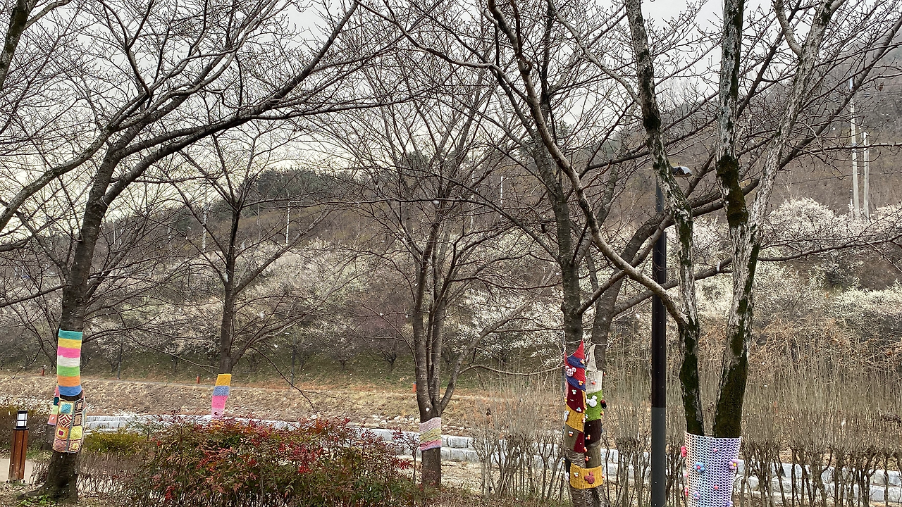 지금 사는 곳으로 1년 전에 이사를 왔는데, 하천을 따라 아주 긴 구간으로 매화나무 군락이 있다.