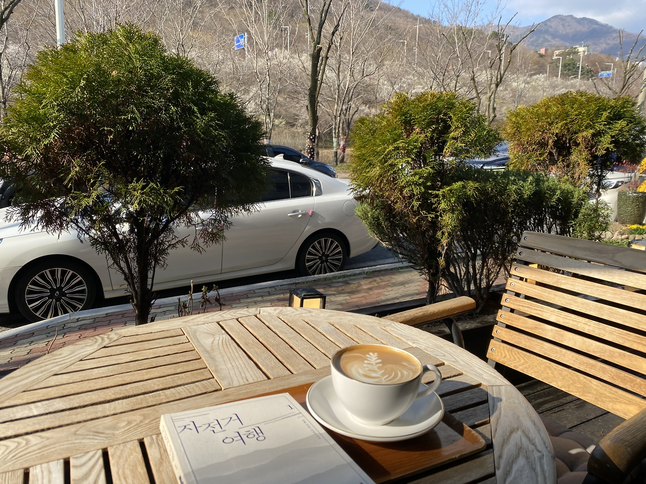 오늘은 기온이 어제보다 더 떨어져서, 다시 롱패딩을 장착하고 카페의 야외 테라스에 앉아 있었다.