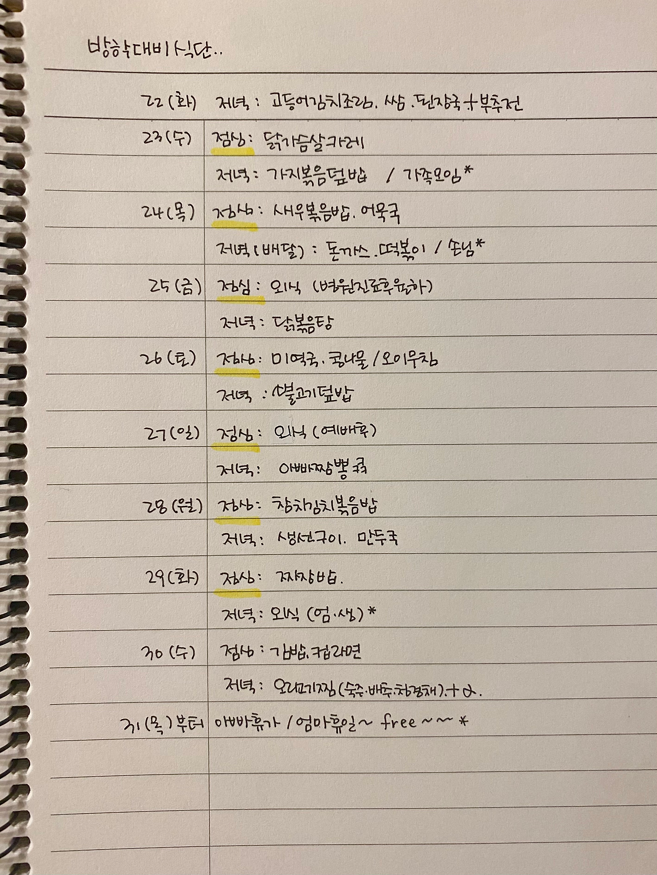 익숙한 대로 카페에 가서 책을 읽으려고 했는데, 앉아서 1시간 동안 멍하게 아이들 방학식단을 짜면서 잊어버렸던 할 일들을 찾아내었습니다.