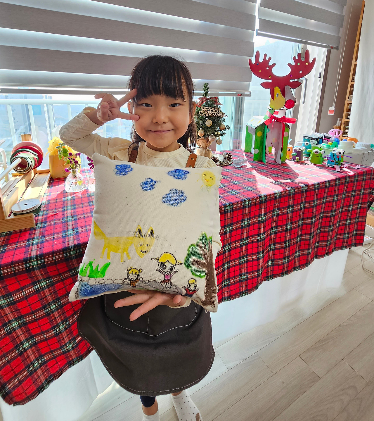 "오늘은 쿠션 위에다 마음껏 그릴 거야~"