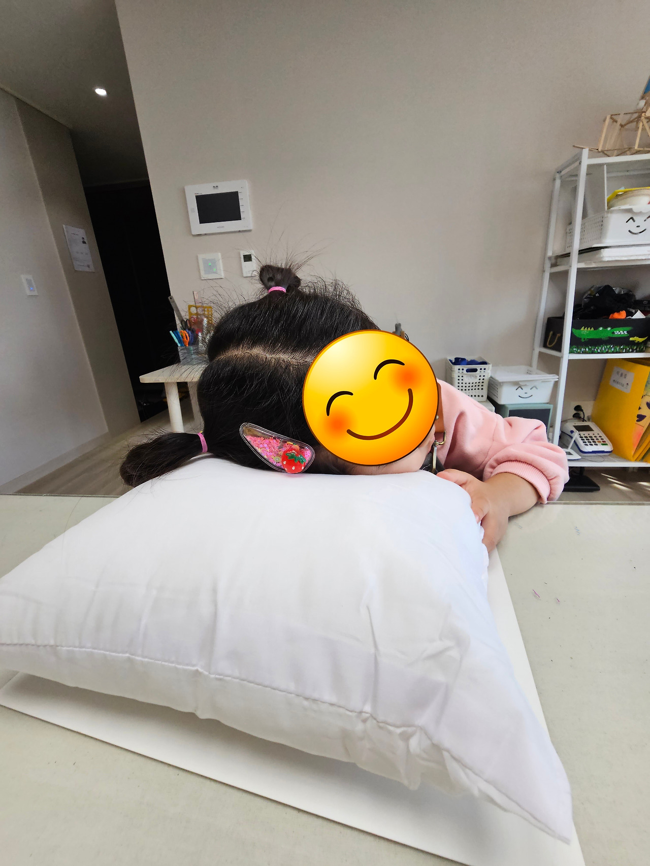 얼굴을 파묻고 잠시 낮잠을 자듯 눈을 감아보는 아이,