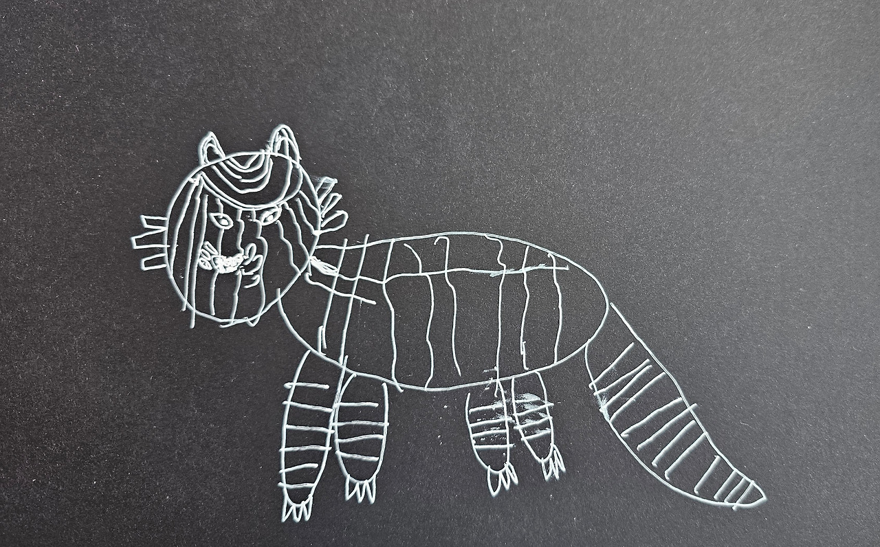 쨔잔~~ 7살인 여자친구는 검은 도화지 위에 스스슥 흰색펜으로 호랑이의 모습을 그려나갔다.