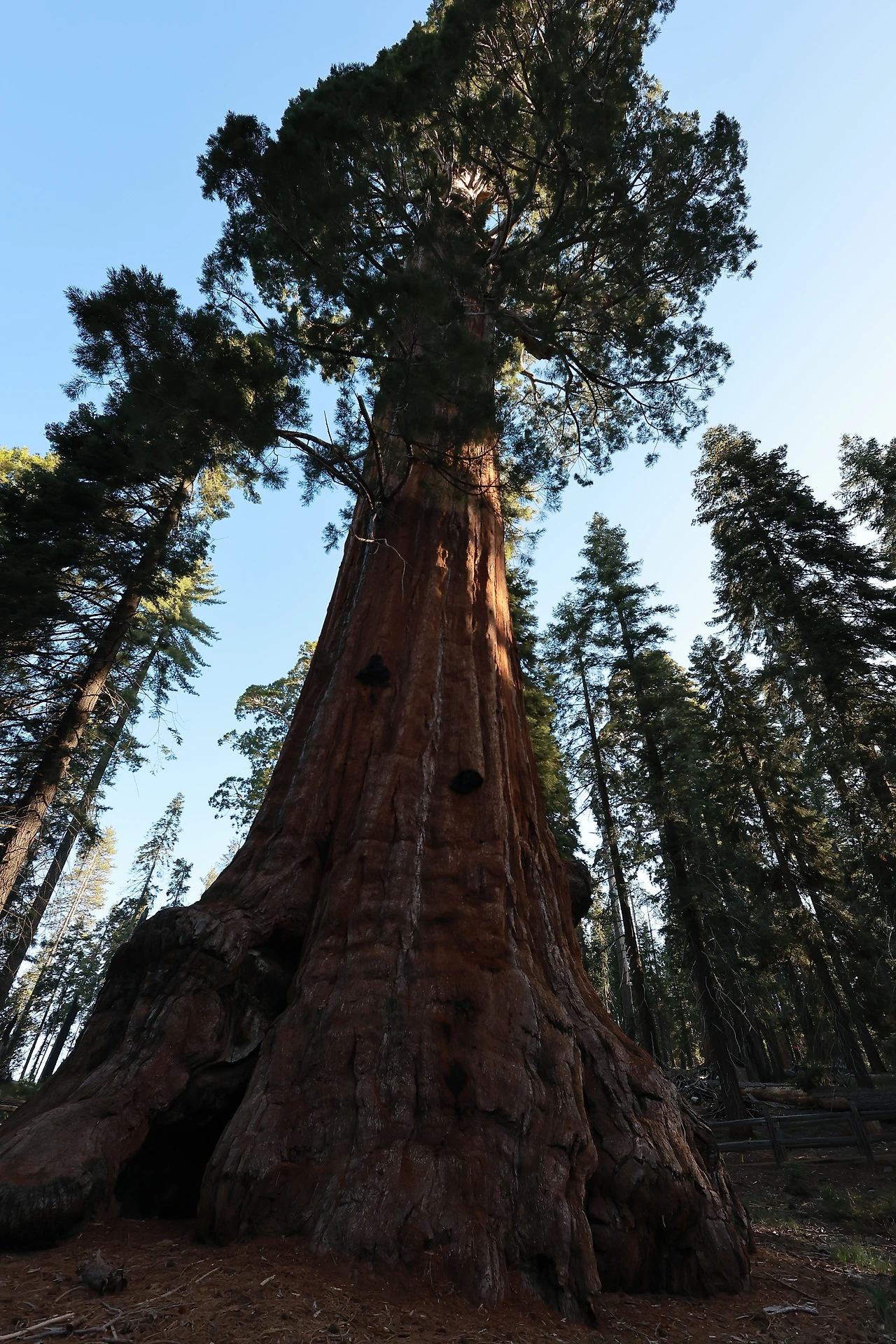 이 자이언트 세콰이어(Sequoiadendron giganteum)는 수천 년 동안 평균 50~85m, 최고 95m까지 자라며, 밑동 둘레는 30m가 넘는다. 키로는 북쪽의 코스트 레드우드보다 높이는 낮을 수 있지만, 전체 부피로 따지면 세상에서 가장 거대한 생명체다. 그중에서도 셔먼 장군 나무(General Sherman Tree)는 부피 기준으로 지구상에서 가장 큰 나무로 손꼽힌다.