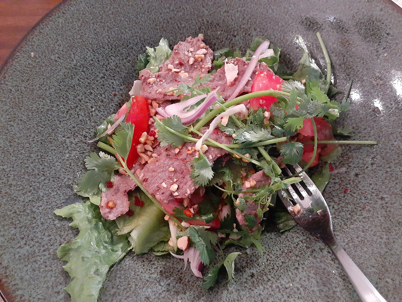 타이 비프 샐러드는 피시소스를 사용한 드레싱의 맛이 핵이다. 고수와 드레싱만 준비되었다면 무엇으로도 맛나게 타이샐러드를 즐길 수 있다.