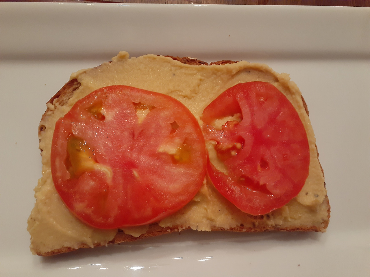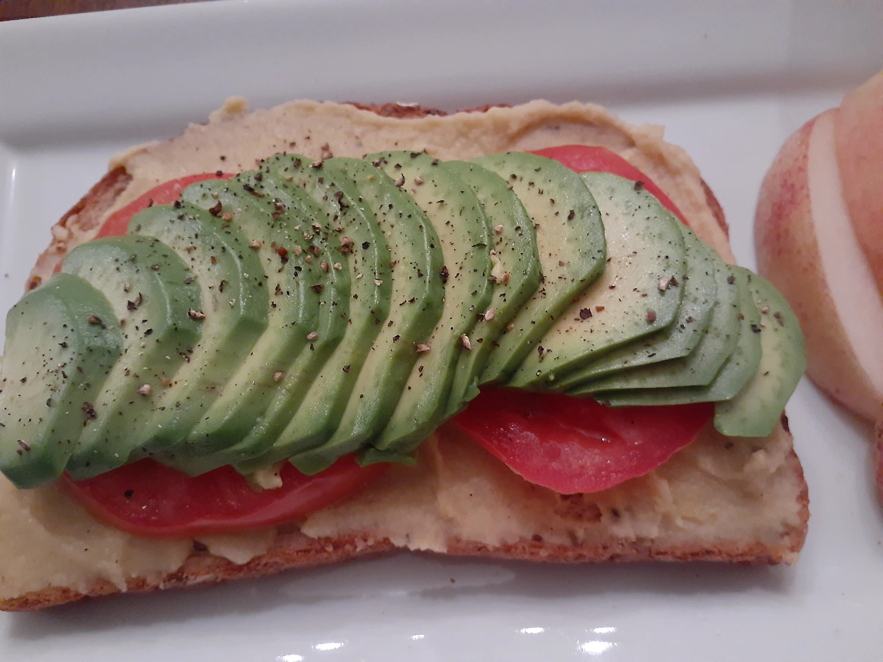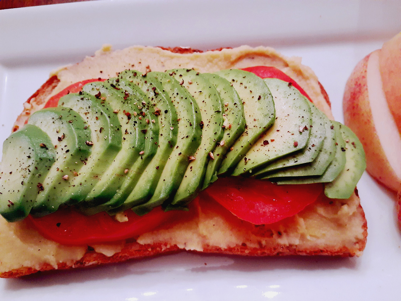 멀티그레인 빵을 살짝 토스트 해서 하머스를 듬뿍 발라준다. 그 위에 토마토 슬라이스를 얹는다. 토마토 위에 차갑게 씻어놓은 새싹을 얹어야 하는데 마켓에 없어서 패스했다. 아보카도를 마지막으로 얹는다. 마지막 통후추 그라인드 톡톡.