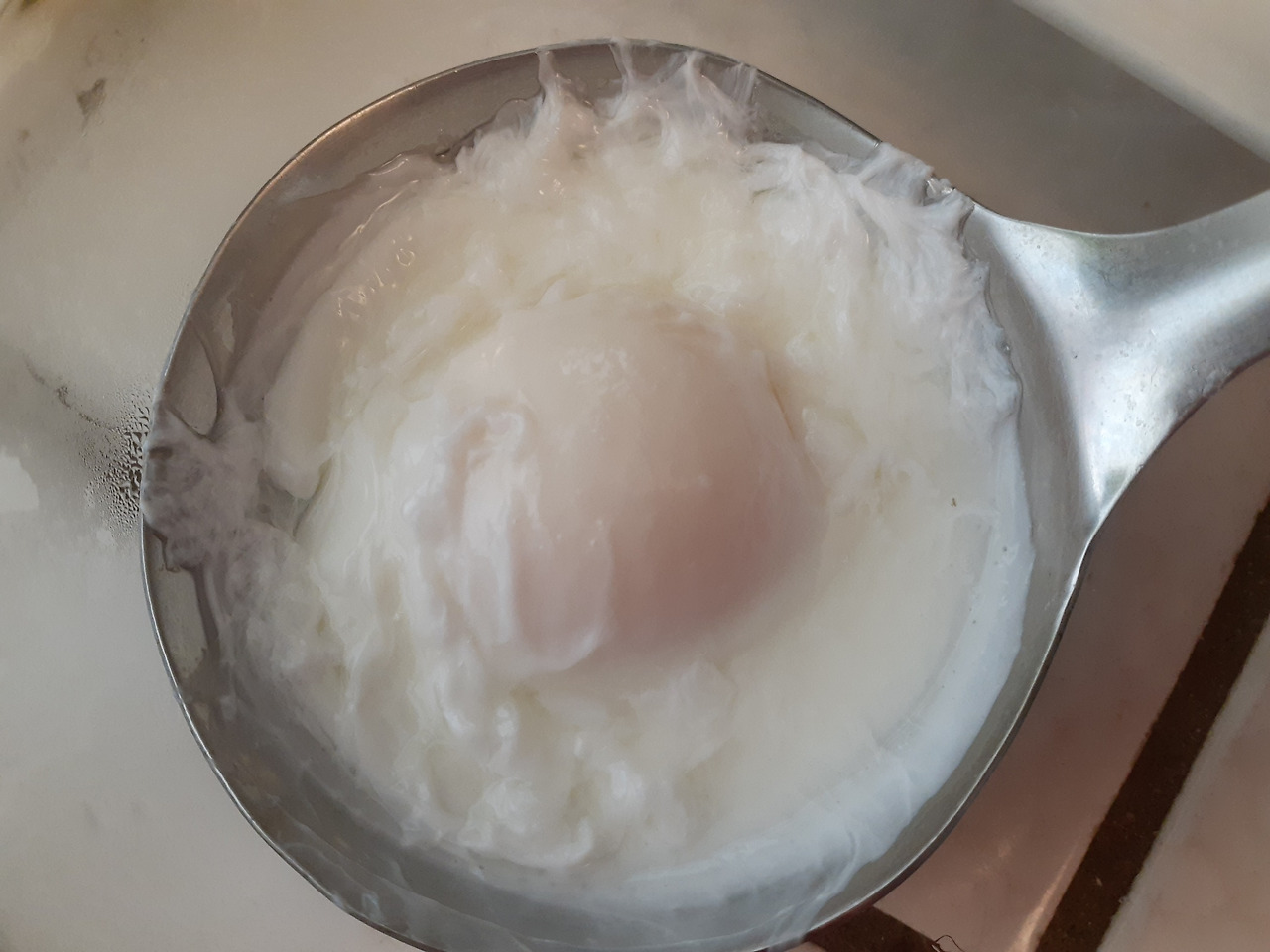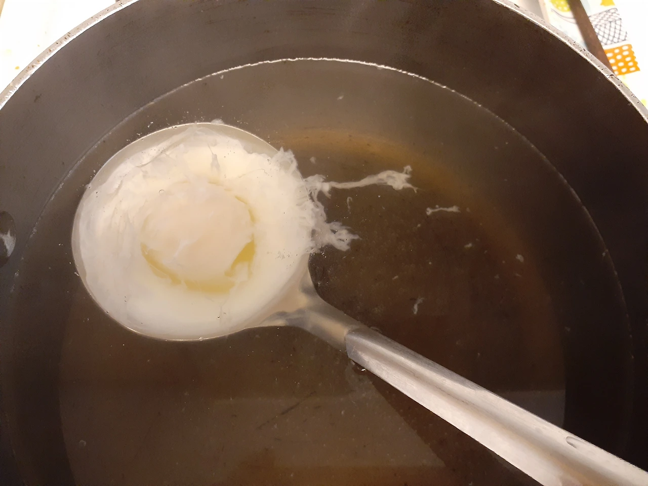 2. 계란을 물에 직접 넣는 것보다 스테인리스 국자에 담아 넣으면 더 용이합니다.