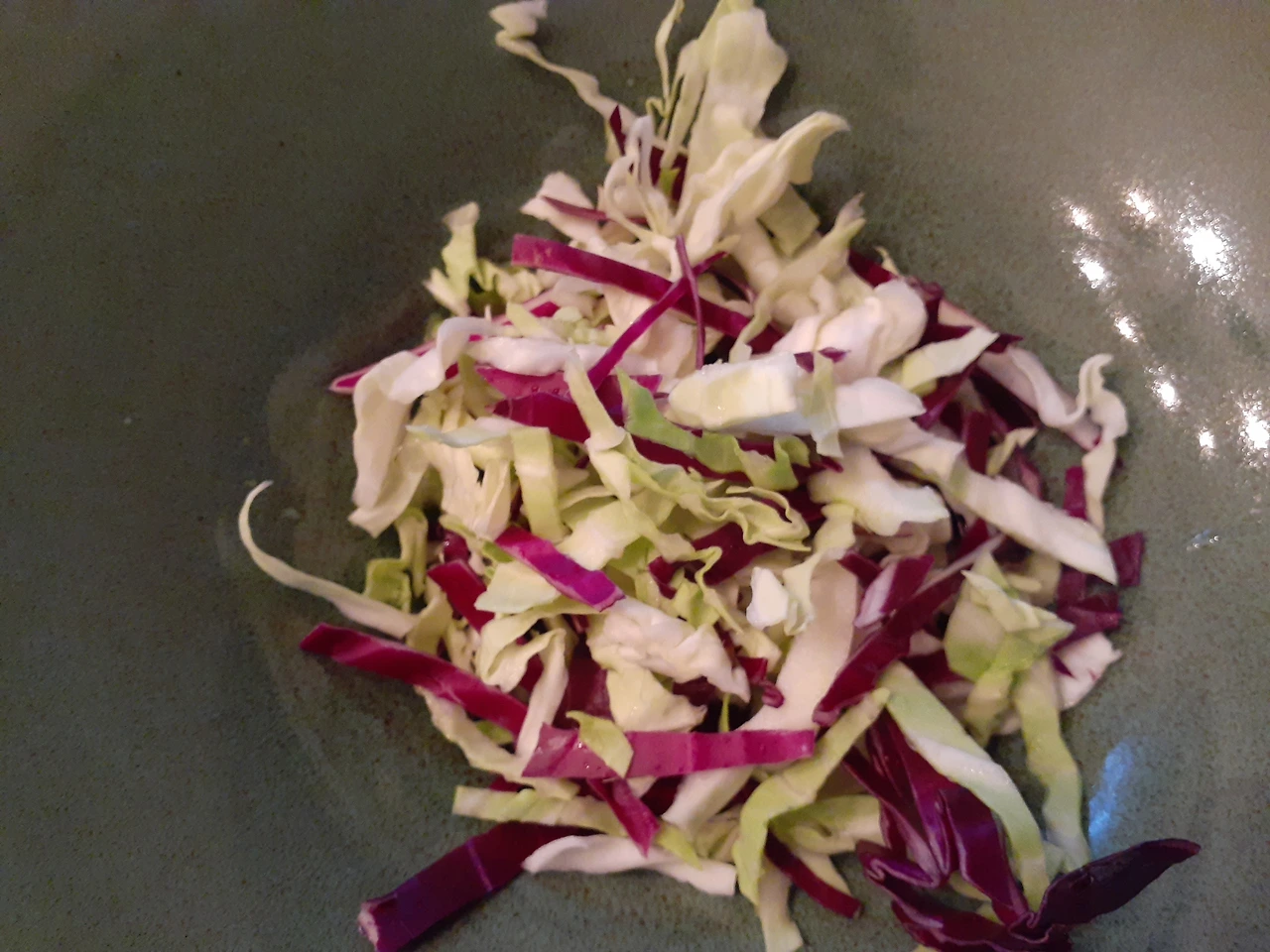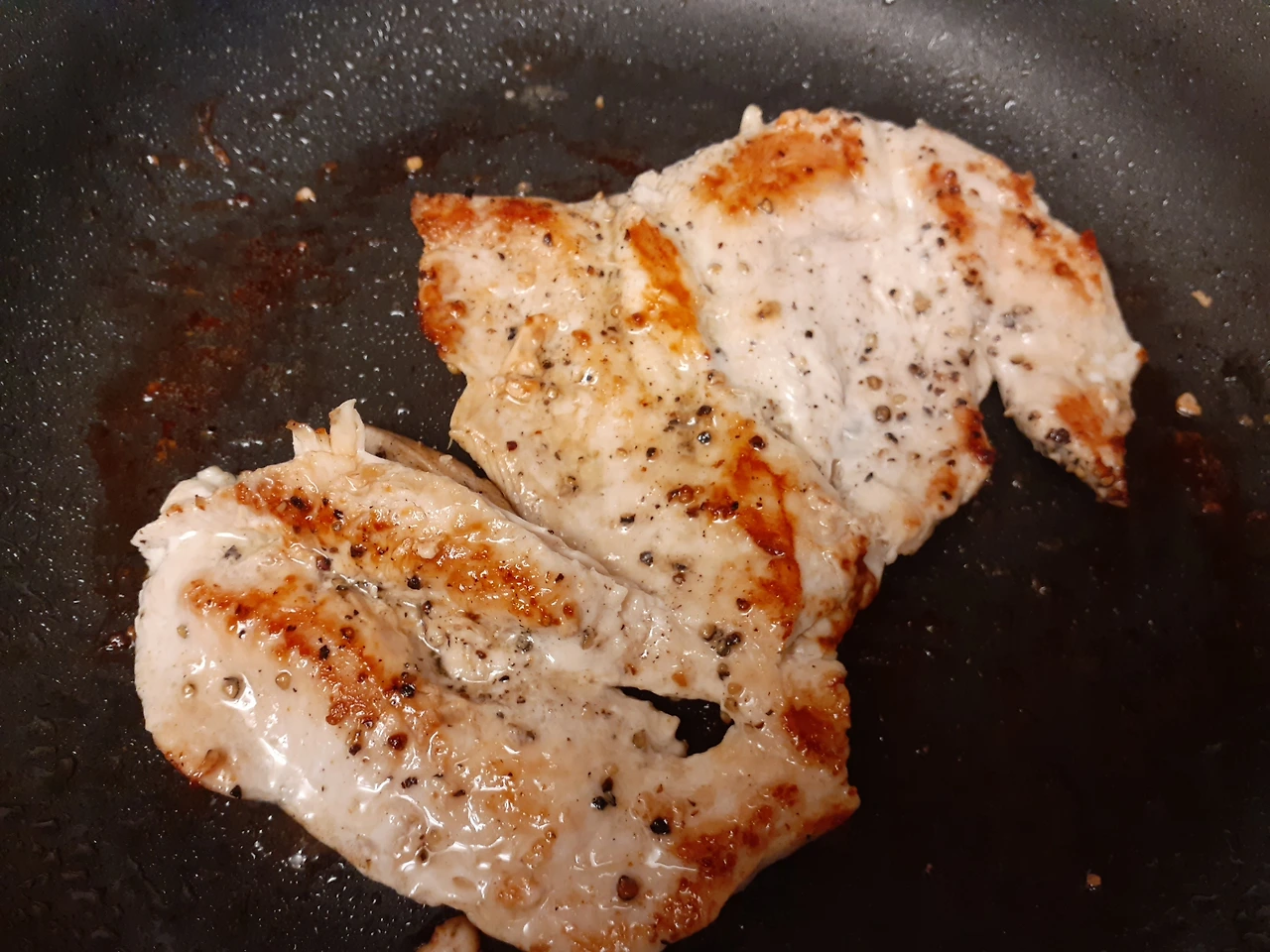 오늘의 브런치는 구운 닭가슴살이 올려진 케일 샐러드입니다. 올리브오일, 소금과 후추로 미리 시즌닝해 두었던 닭가슴살 1피스를 구워서 준비해 둡니다.