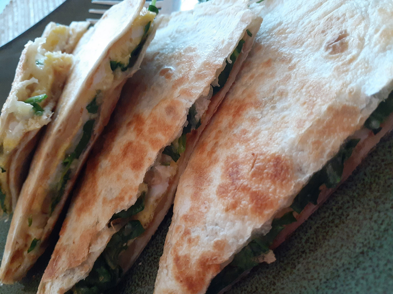 퀘사디아에 계란이 들어가면 보통 브랙패스트 퀘사디아라고하지요. 치즈는 기본이니 브랙페스트 치즈 퀘사디아 완성입니다.