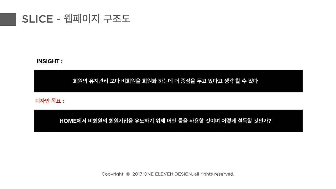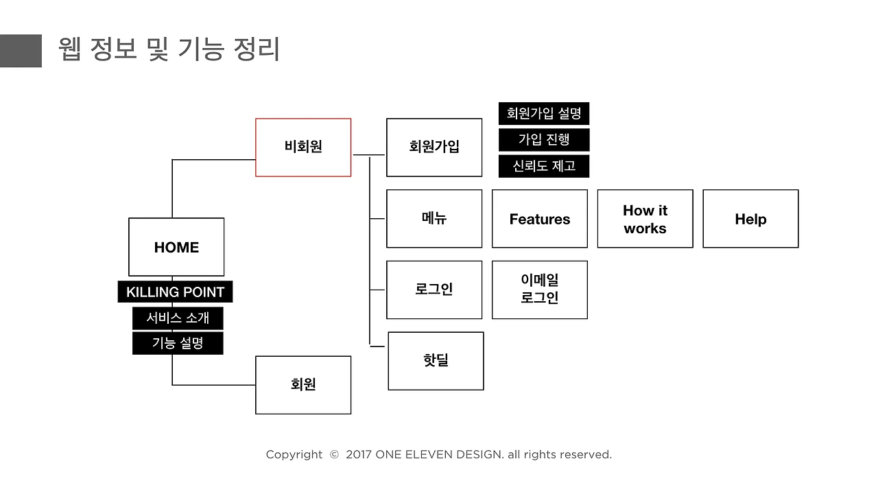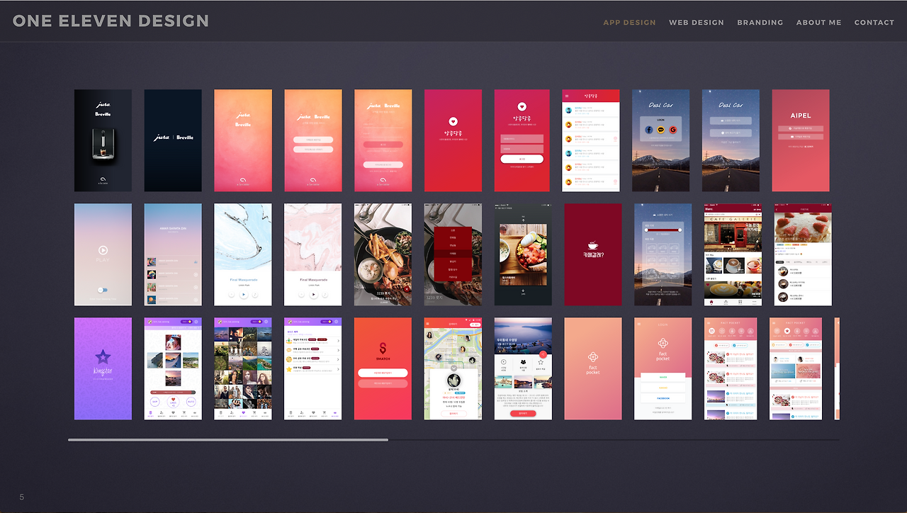 원일레븐 디자인 스튜디오를 운영하면서 가장 중요하게 생각하는 건 바로 ‘보이지 않는 부분까지 디자인한다’ 라는 마인드였어요. 대부분 디자인 에이전시를 보면 말그대로 ‘디자인’ 에이전시이지 ‘UX’ 에이전시라고 느껴지지 않았어요. 기획부터 사용자가 사용하는 순간까지 철저하게 사용자중심, 사용자경험 디자인을 하는 서비스를 제공하는게 핵심이에요. 그래서 저는 앱이나 웹으로 표현된 예쁜 시각적인 디자인은 정말 빙산의 일각이라고 생각해요. 그 디자인을 만들어내기 위해 최대한 서비스에 대해서 많이 얘기하고, 근본적으로 해결하고자 하는 문제에 대한 답을 디자인으로 풀어내는게 정말 중요하다고 생각해요.