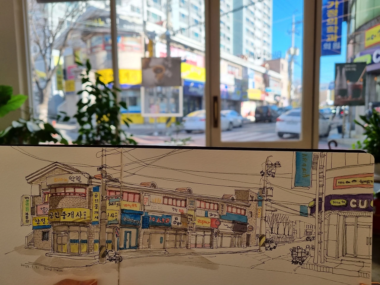 세차장에 차를 맡겨놓고 여기저기 걷다가 그림 그릴 카페에 자리를 잡았다. 오늘은 여유로우니까 그림도 정성 들여 그린다. 요즘 시간을 많이 안 들여서 그런지, 정체기인지 그림이 마음에 들지 않아서 오늘은 팔레트도 바꾸고 그림도 천천히 그린다.