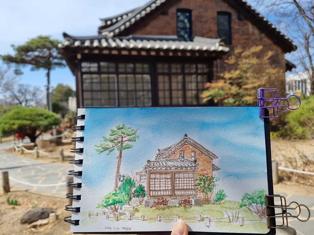 취미로 그림을 그린 지 벌써 5년이 다 되어 간다. 처음 시작할 때보다 그림 실력이 많이 늘기도 했지만, 요즘은 내 그림 실력에 불쑥불쑥 불만이 생기곤 한다. 그림이 마음에 들어서 내가 팔로우하는 인스타 운영자들이 어반스케치를 시작한 지 얼마 되지 않았다는 사실을 알게 되면 괜히 나에게 불만을 가지곤 한다. 그리고는 깜짝 놀란다. 내가 아직도 이런 비교의식을 가지고 있었구나 싶어서. 그리고 다시 내가 그림을 그리는 이유는 잘 그리기 위해서는 아니라는 사실을 상기시킨다. 노년에 여행하면서 그림을 그리고 싶다던 나의 로망을 좀 더 일찍 이루었을 뿐이다. 나는 현재 나의 여행과 그림을 즐길 뿐이다. 그림을 오래 그리다 보니 자연스레 욕심이 생기기는 하지만 그 욕심이 지금의 행복을 갉아먹는다면 과감히 버려야 한다. 그러면서도 살며시 이렇게 1년 동안 매일같이 그림을 그리다 보면 내 그림도 더 나아질 거라는 기대를 가진다.
