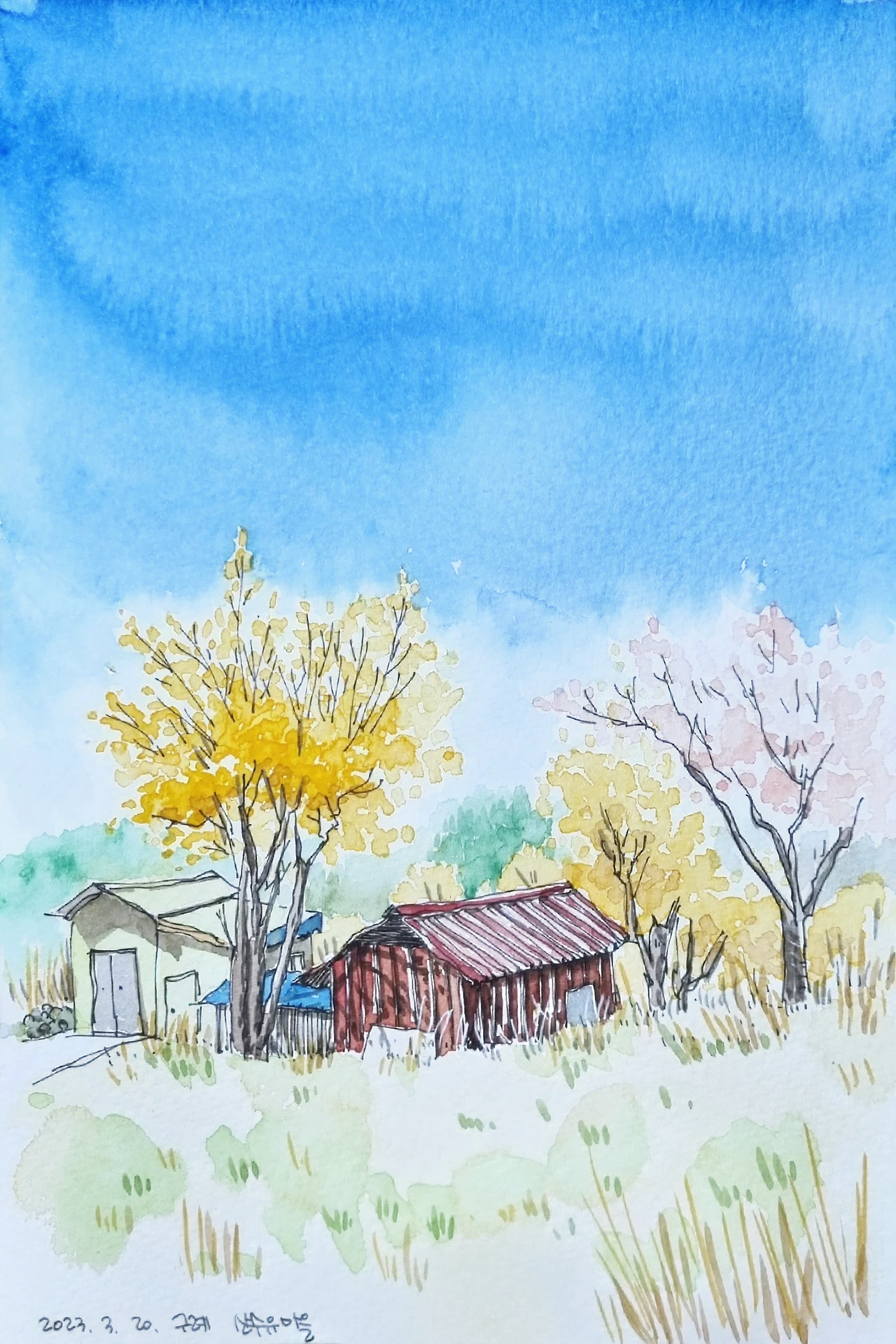 반곡마을과 상위마을까지 둘러보다 보니 시간이 꽤 되었다. 가는데 2시간이나 걸리니 아이들 저녁 차려주려면 서둘러야 한다. 그림 한 장 못 그리고 가려니 아쉽지만 큰맘 먹고 온 곳에서 보고 싶은 곳을 남겨두고 앉아서 그림을 그릴 여유는 없었다. 둘째 야구 레슨 전에 저녁을 해주기 위해, 엄마를 모셔다 드리고 집에 가기 위해 휴게소도 들르지 않고 대구로 왔는데 엄마가 우리 집으로 바로 가라고 고집을 부리신다. 오늘 많이 안 걸어서 우리 집에서 내려서 걸어가시겠단다. 우리 엄마는 못 말리지 뭐.
