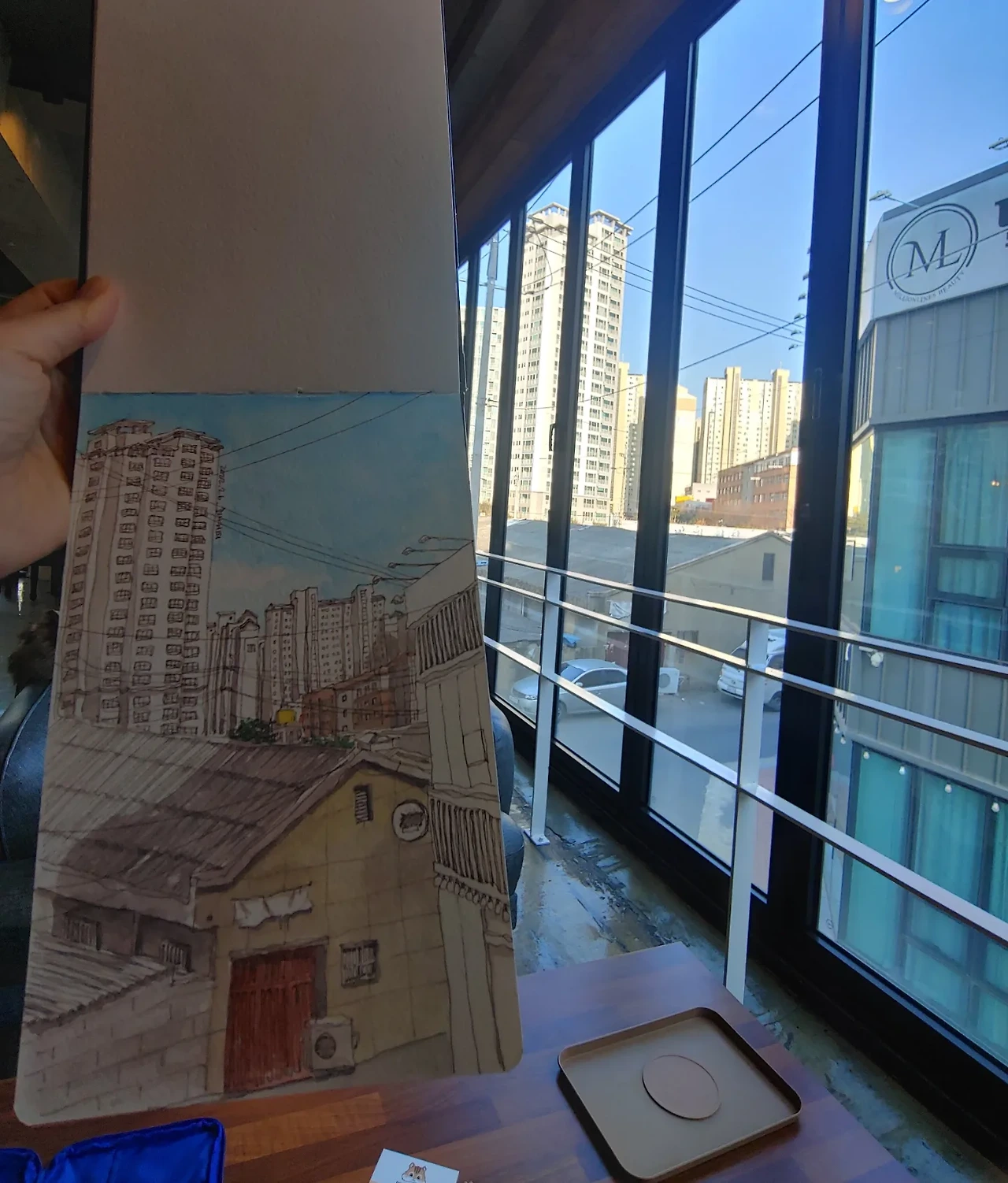 새로운 카페라고 찾아간 곳이 익숙하다. 예전에 친구들과 왔던 커피스미스가 있던 자리잖아. 그때 그림 그리러 다시 와야겠다는 생각을 했었는데 이렇게 엉뚱하게 다시 오게 됐네. 창가 쪽에 자리를 잡고 흰 종이 위에 자릴 잡아 본다.