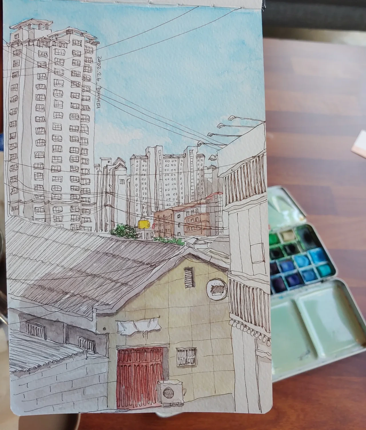 그림을 그리다 보니 ㅇㅇ중학교가 보인다. 수성구 다음으로 교육열이 센 학교다. 다 같이 여유롭게 살면 될 텐데 우리는 왜 이렇게 다 같이 힘들게 사는 걸까. 그 대열에 끼지 않으면 낙오될 것 같은 두려움 때문에 우리는 목적도 없이 꿈도 없이 자녀들에게 지나친 성실과 열심을 요구한다. 마냥 천진난만하게 행복한 유년기를 보내고자 한다면 결국 대가를 치루어야 한다고 생각한다. 하지만 나는 나중에 치러야 할 대가보다 잃어버린 유년기의 대가가 더 큰 것 같다. 행복한 유년기는 평생을 행복하게 살아가는 힘이 된다. 빡빡한 학원 스케줄을 소화하느라 생긴 스트레스를 풀기 위해 또 다른 예체능 학원을 가야 하는 상황 속에서 행복한 유년기를 보내주기를 바라는 것은 어불성설이다.
