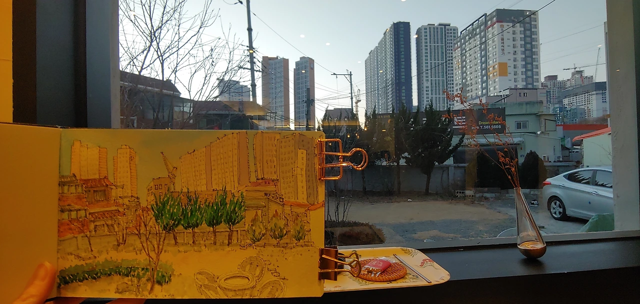 아무래도 어반스케치와 2시간 걷기의 내 방학 계획을 엄마와 매일 동행하기는 힘들 듯했다. 엄마에게 매일 같이 가기는 무리가 있는 것 같다며 일주일에 하루 요일을 정하자고 했더니 엄마는 손사래를 치며 "니 혼자 맘대로 다녀. 요일까지 정해서 같이 나올 거 뭐 있냐." 하신다. 아고.. 못 말리는 우리 엄마. 조금이라도 자식에게 폐를 끼칠 것 같으면 바로 발을 빼신다. 일주일에 하루 정해서 같이 산책해도 되는 거지. 자식에게 효도하는 만족감도 큰 거라고, 엄마가 무언가를 받는 게 자식들에게도 행복을 주는 거라고, 아무리 얘기해도 ‘네가 행복하면 엄마도 행복한 거’라는 엄마의 레퍼토리가 반복될 뿐이다. 결국엔 엄마를 설득시키지 못하고 엄마와 함께 걷는 대구 올레 여행은 하루로 막을 내리고 말았다. ‘나는 나이 들어서 자식들에게 당당하게 효도받을 거’라며 엉뚱한 다짐을 한다.