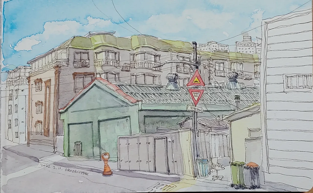 집에 와서 가족들과 햄버거로 점심을 먹고 이제 어디에 그림을 그리러 갈까 또 고민한다. 걷기는 이미 끝냈으니 오랜만에 카페는 차를 타고 가야겠다. 아이들은 친구와 약속이 있다니 결국 이번에도 홀로 집을 나선다. 매일 똑같은 일을 반복하면서도 이렇게 질리지 않다니. 홀로 커피를 한 잔 시키고 마음에 드는 자리를 골랐다. 창가에 앉아 눈앞에 보이는 폐공장과 주변 건물들을 성실하게 펜으로 담는다. 사진으로 찍어서는 별 것 없는 풍경들을 그림으로 만드는 것이 매력적이다. 그림 같은 풍경을 매일 볼 수는 없는 도시인들에게 매일 보이는 평범한 풍경을 그림 같은 풍경으로 바꾸어 주는 일이지 않은가. 그림이 마음에 드는 날도 있고 아쉬운 날도 있지만 결과물보다 과정이 신날 수밖에 없다. 누군가에게 제출을 해야 하는 것도, 평가받아야 하는 것도 아니니 말이다. 그야말로 내가 좋아서 하는 일인데 즐겁지 않을 수 없다.