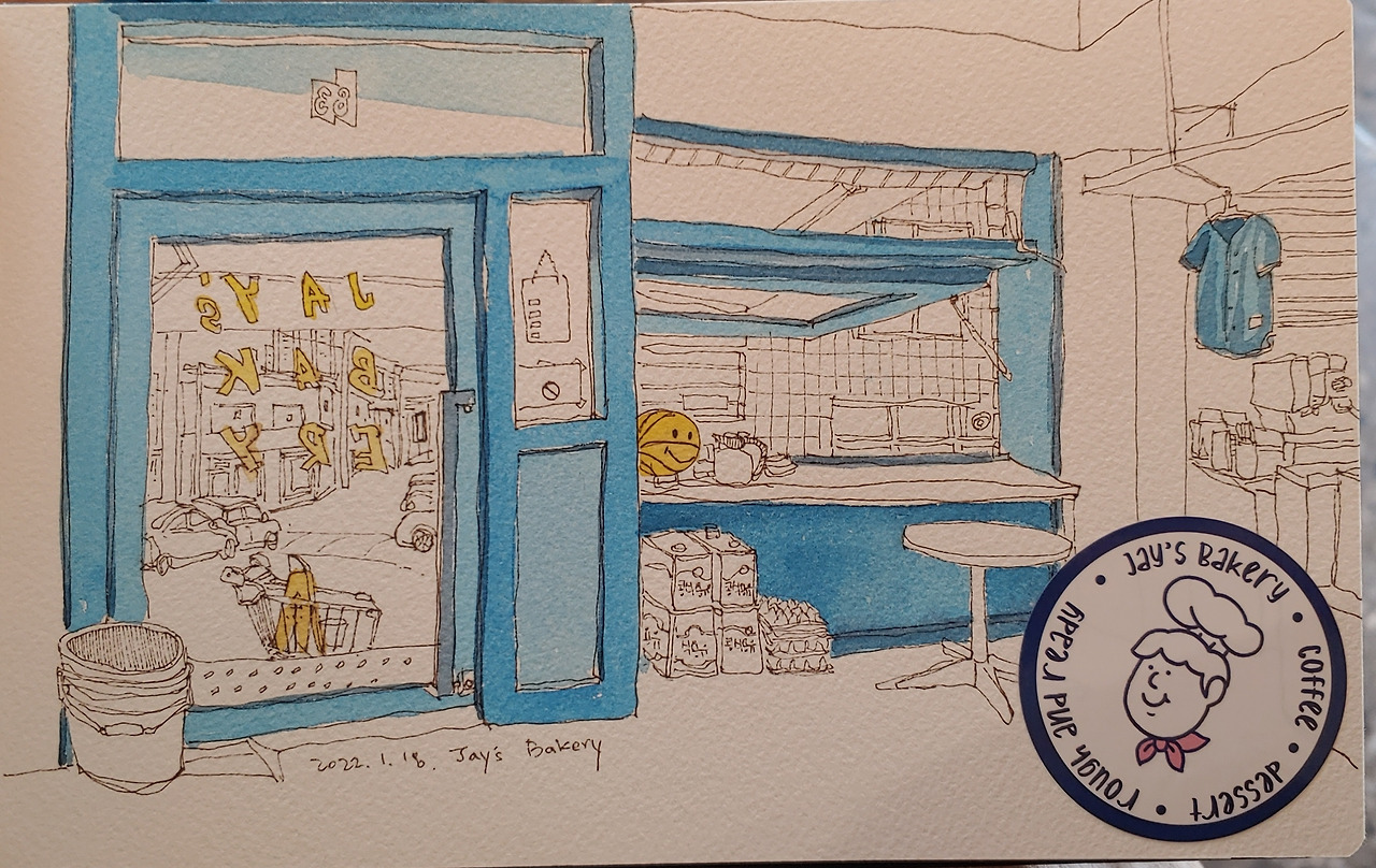 서문시장에 오가면서 많이 걸었으니 오늘은 집 근처 카페에서 그림을 그려보려 집을 나섰다. 늘 사람들이 많아 들어가지 않았던 카페가 웬일로 한산하다. 이때다 싶어 카페로 들어서 그림 그리기 좋은 곳에 자리를 잡았다. 그리고 바로 이어 사람들이 마구 몰려온다. 쉴 틈 없이 사람들이 들어와 자리를 잡는다. 역시 핫플은 다르구나. 주변 카페들은 다 조용한데 여기만 사람이 많은 이유가 뭐지? 하지만 잠시 앉아 있어 보니 금방 이유를 알게 된다.
