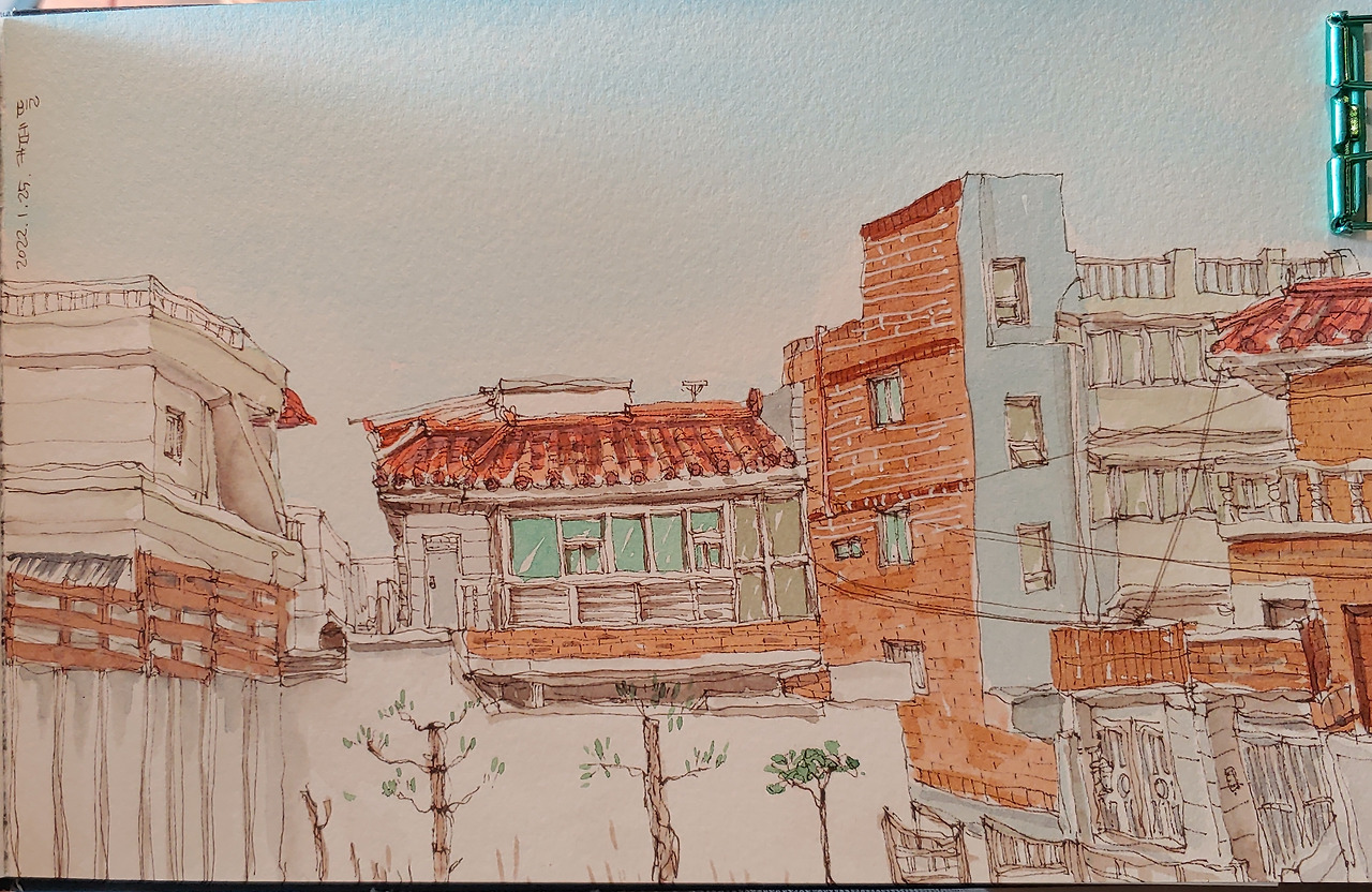 빨간색 벽돌로 지어진 주택지구를 그리는 게 참 재미있다. 비슷비슷하면서 조금씩 다른 다양한 집들을 그리는 재미가 있지. 대단한 건축가가 설계하진 않았겠지만 각 가정의 요구와 개성이 반영된 건축물들은 스토리를 가지고 있다. 따스한 사람의 온기를 품은 장면이다. 내가 주택가의 작은 카페를 끊임없이 찾아다니는 이유다. 아파트에 살면서 끊임없이 다른 세계를 동경하는 내 마음이 반영되어 있는지도 모른다.