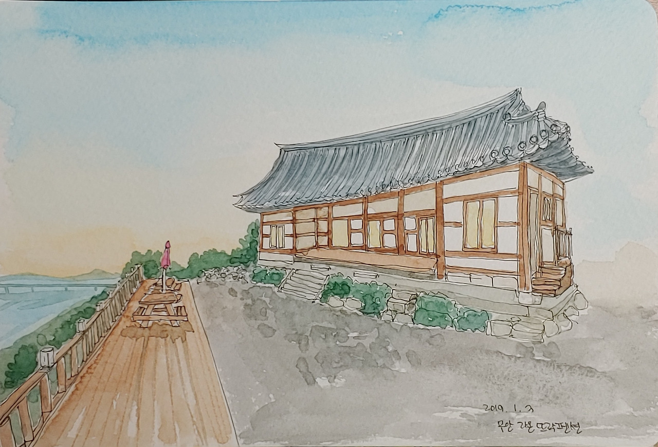 우리의 두 번째 숙소가 있는 무안에 도착했다. 저렴한 숙소에 후기도 별로 없어 살짝 걱정했는데, 경치는 너무 좋고 온돌방은 따끈따끈하다. 아이들도 “엄마, 여기 너무 좋아. 하루만 있기는 너무 아까워.”하며 흡족해한다. 화려하거나 고급스러운 곳도 아니고 호텔처럼 침구류가 근사하지 않지만, 엄마와 함께 여행하는 곳곳을 좋아해 주어서 고맙다. 사실 이 한옥 펜션은 운치 있고 아늑하고 포근해서 나도 너무나 마음에 든다. 원래도 저렴한 가격에 기준 인원에 어린이 한 명 추가라고 웃으며 추가 비용 만원까지 깎아 버렸으니 민망하기만 하다. 그런데도 이렇게 방을 따끈따끈하게 데워놓고 친절하게 우리를 맞아주셨다.