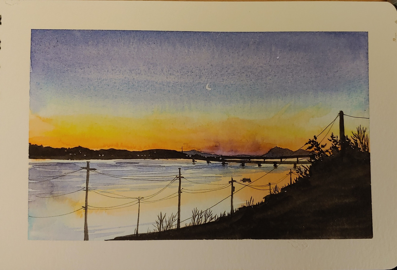 그렇게 우두커니 서서 마냥 해를 기다리고 있는데도 시시각각 변하는 색깔이 어찌나 예쁜지 지겨울 틈이 없다. 강에 비치는 색감까지 더해져 황홀하기까지 하다. 열심히 하늘을 구경하다 보니 저 멀리 무언가 움직이는 게 보인다. ‘저게 뭐지? 구름이 저렇게 빨라?’, ‘또 지나가는데?’ 궁금함을 참지 못하고 눈이 빠지도록 그 물체를 따라가 본다. V자 대형을 하고 날아가는 새떼라는 것을 알아내는 순간 보물 찾기에 우승한 아이처럼 흥분된다. 아침에 저렇게 이동을 많이 하는구나. 다들 일찍 일어나는 새들이시군. 벌레는 씨가 마르겠어.