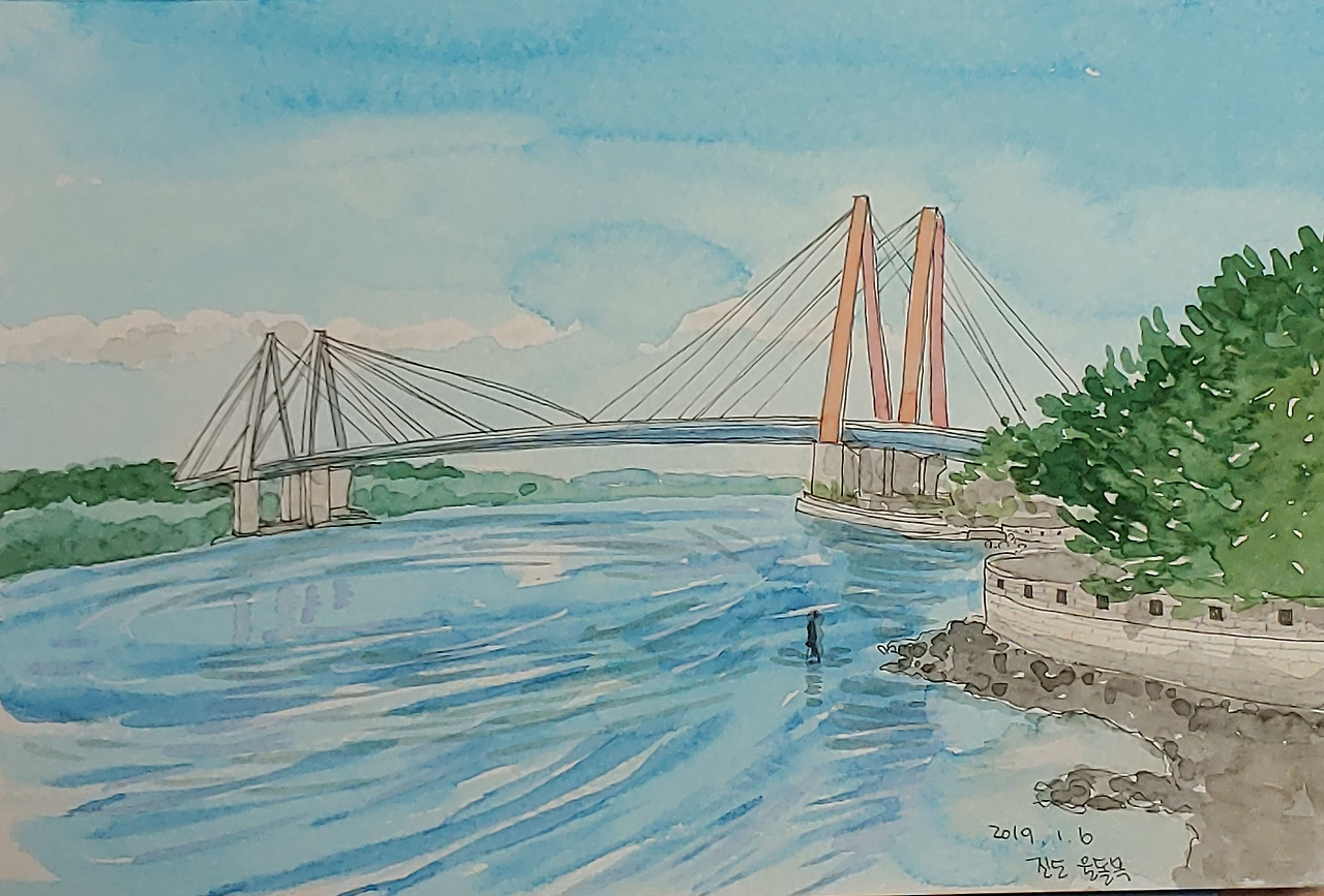 전쟁놀이를 좋아하는 아들에게 흥미진진한 장소, 우수영 관광지에 도착했다. 거센 바다의 소용돌이를 이용해 일본 수군을 격파했다는 이야기만으로도 흥분되는 장소, 울돌목에는 4백 년이 훌쩍 지난 지금도 그 소용돌이가 눈앞에 생생하게 펼쳐진다. 산책로도 너무나 예쁜데, 춥기도 너무 추워서 실내로 바로 들어갈 수밖에 없다. 겨울 여행은 이래서 아쉬운 점이 많긴 하다. 물론 이 산책로를 걷고 싶은 건 나뿐이다. 아이들은 이런 산책로엔 관심 없지. 세찬 바람을 피해 재빨리 명량대첩 해전사 기념관으로 들어갔다. 명량대첩에 대한 재미난 기록들과 다양한 체험 거리로 몰입도가 높은 아기자기한 박물관이다.
