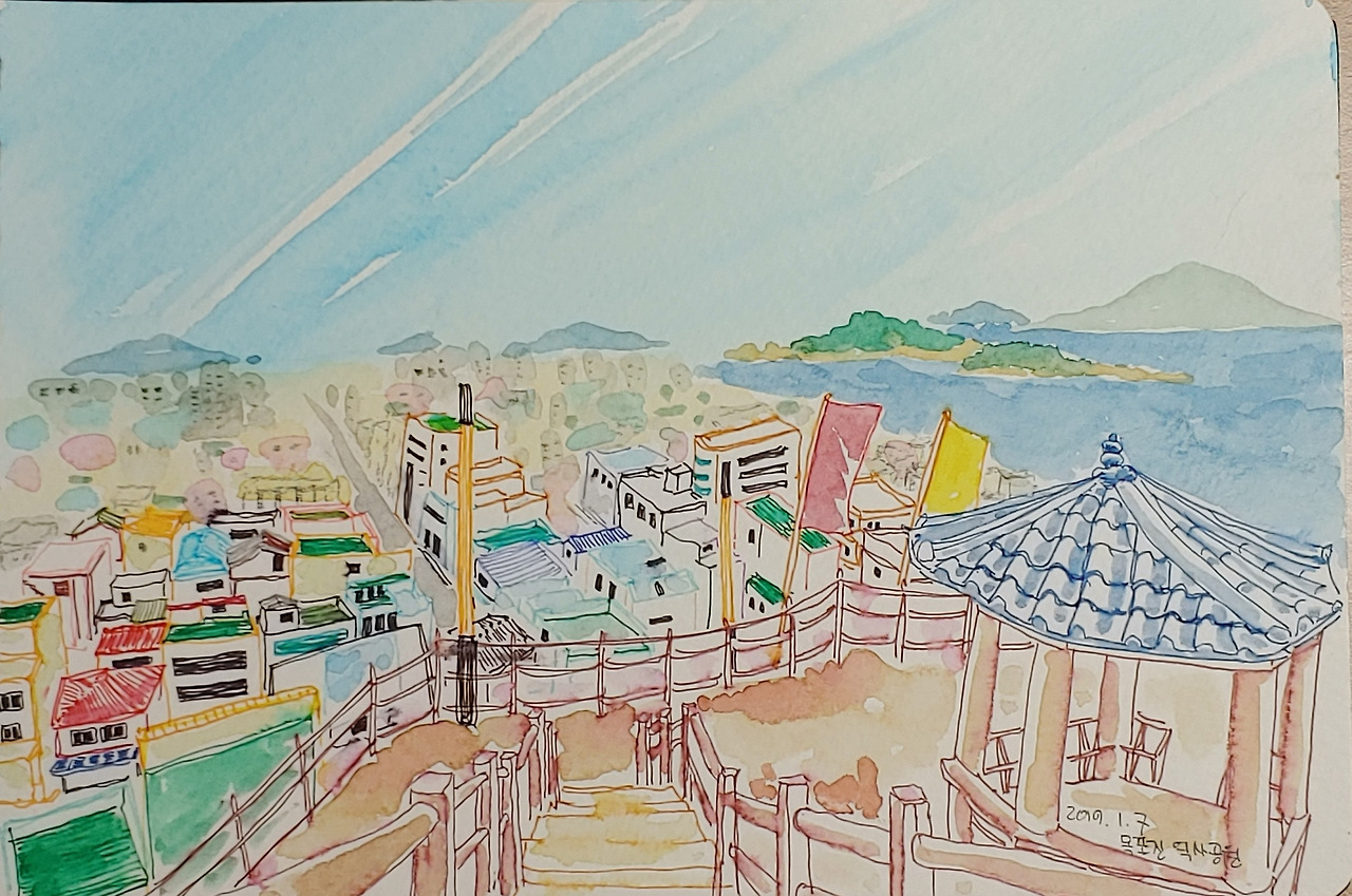 점심을 먹고 목포진 역사공원에 올라 딸이 알록달록한 게 비빔밥처럼 예쁘다고 묘사한 목포 시내의 전경을 맛보고, 영화 1987의 촬영지인 연희네 슈퍼에도 살짝 들렀다. 쉬는 날로 정해놓고선 들른 곳이 너무 많아 웃음이 난다. 사람마다 쉬는 방법이 다른 거니까. 하지만 쉬는 날이기 때문에 많이 걷지도, 많이 구경하지도 않고 카페에서 디저트나 먹으며 쉬기로 했다. 아이들은 종이접기를 하고 나는 오랜만에 책을 꺼내 들었다. 아늑하고 여유로운 시간에 은은한 노을빛이 쏟아진다. 잘 쉬었다.