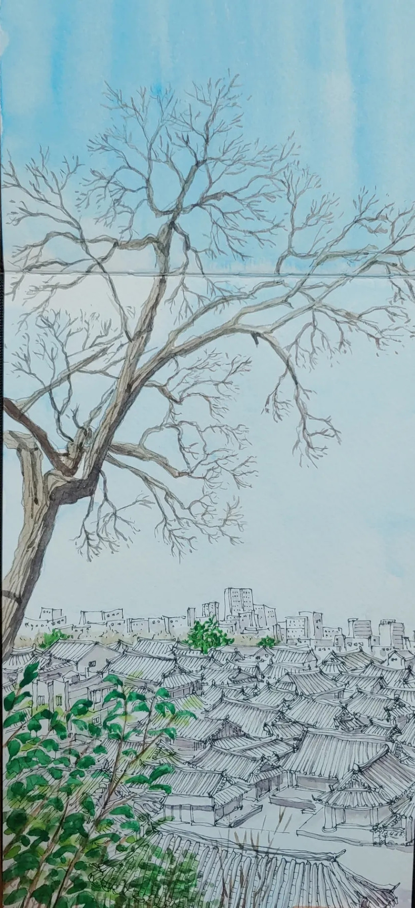 목을 축이기 위해 먼저 음료 한 잔씩 사 들고서 먹고 싶은 것들을 마구 사서 담기 시작했다. 관광지라 가격이 비싸긴 하지만 여기 와야 먹을 수 있는 것이라면 온 김에 사야 하지 않겠는가. 에그타르트, 고로케, 딸기 모찌, 바게트 버거, 만두에 선물로 드릴 수제 강정까지 샀다. 그리고 지금 먹을 닭꼬치까지. (닭꼬치는 사실 먹기 좀 힘들었다. 소스가 뚝뚝 떨어지고 손이며 입이며 여기저기 처발처발) 음료에 먹을거리를 잔뜩 사들고 주차장까지 오는 길에도 여전히 그림 그리고 싶은 풍경들을 열심히 찍는다. 이럴 때는 손이 하나쯤 더 있으면 좋겠다.
