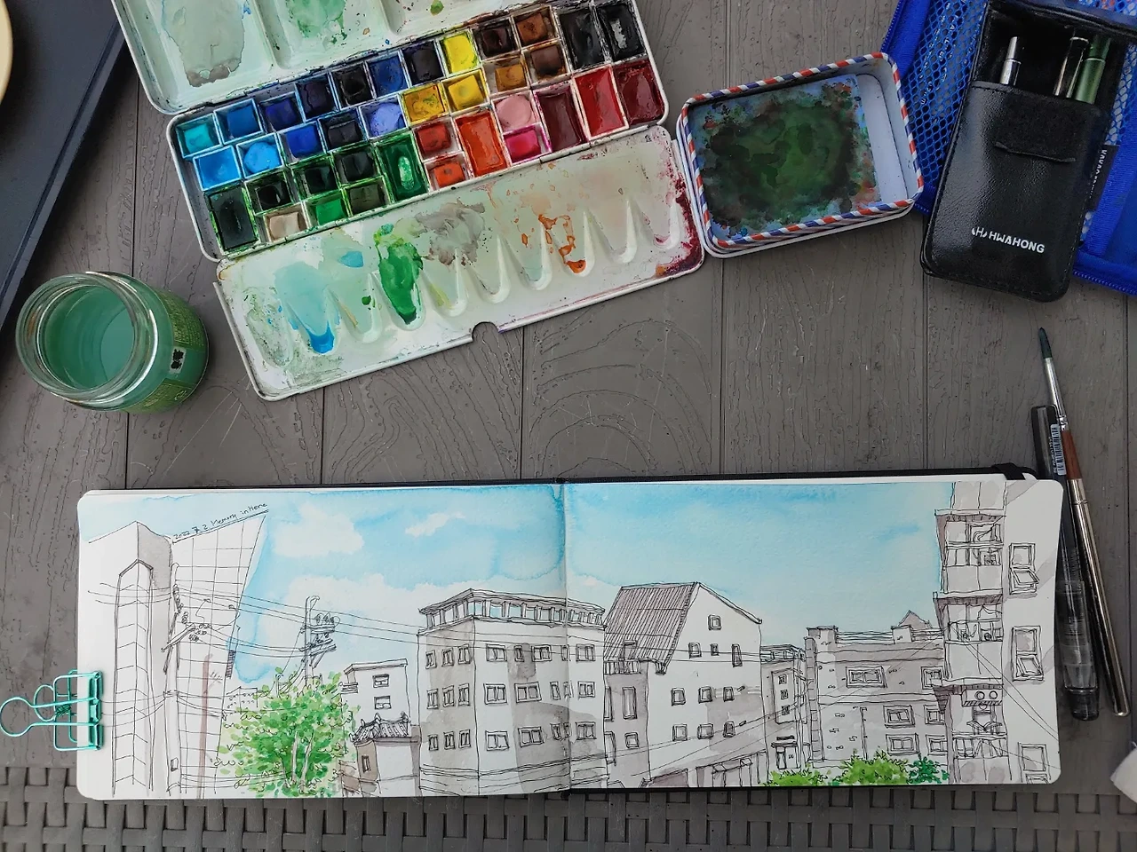 어디 가서 그림이나 한 장 그리고 오자. 이 더위에 야외에서 그림을 그릴 수도 없다며 레스토랑에서 나오며 받은 커피가 있는데도 굳이 카페를 찾아간다. 카페에 들어가며 커피를 들고 갈 수는 없으니 아이스 아메리카노는 뜨거운 차 안에 남겨 두고 카페 문을 열었다.