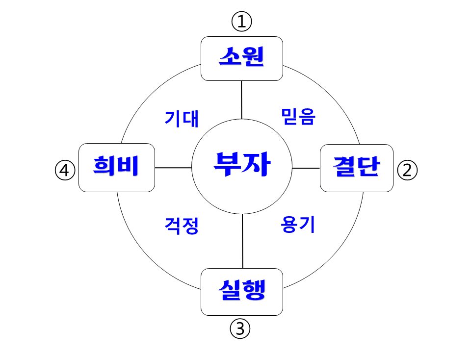 내친김에 내가 그처럼 멍청한 얼간이가 된 경위를 진단해 봤더니, 그동안 공들여 읽은 주식서적과 열심히 시청한 주식강의 영상들이 모두 미끼였다는 생각이 들었다. 주식투자 경력이 화려하면서 언변이 뛰어난 저자와 강사들이 화려한 관록·실적·언변·인기로 사람들의 희망을 충전시켜 ‘부자 꿈’을 계속 유지하게 만드는 주식시장의 속성을 알아챈 것이다. <그림 2>는 그런 판단과 믿음을 시각화한 것이다.