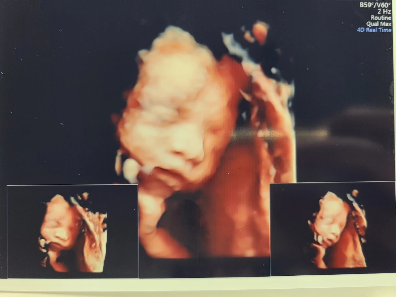 26주 차 검진에서는 임당 검사뿐만 아니라 초음파 검사도 받았어. 한 달 전보다 훌쩍 자랐을 너의 얼굴을 볼 기대에 엄마 아빠 모두 들떠있었어. 그런데 이런 우리 마음을 아는지 모르는지 너는 연신 팔과 손을 올리며 얼굴을 보여주지 않더구나. 초음파 선생님도 답답하셨는지 네가 팔을 내리길 기대하며 엄마 배와 옆구리를 쿡쿡 찌르셨지. 한참의 노력과 기다림 끝에 마침내 살이 포동 하게 오른 네 얼굴을 볼 수 있었어. 그런데 어쩜, 아빠를 꼭 닮은 모습에 엄마는 웃음이 터져버렸어. 첫 딸은 유독 아빠를 닮는다더니 그 말이 진짜였나 봐.