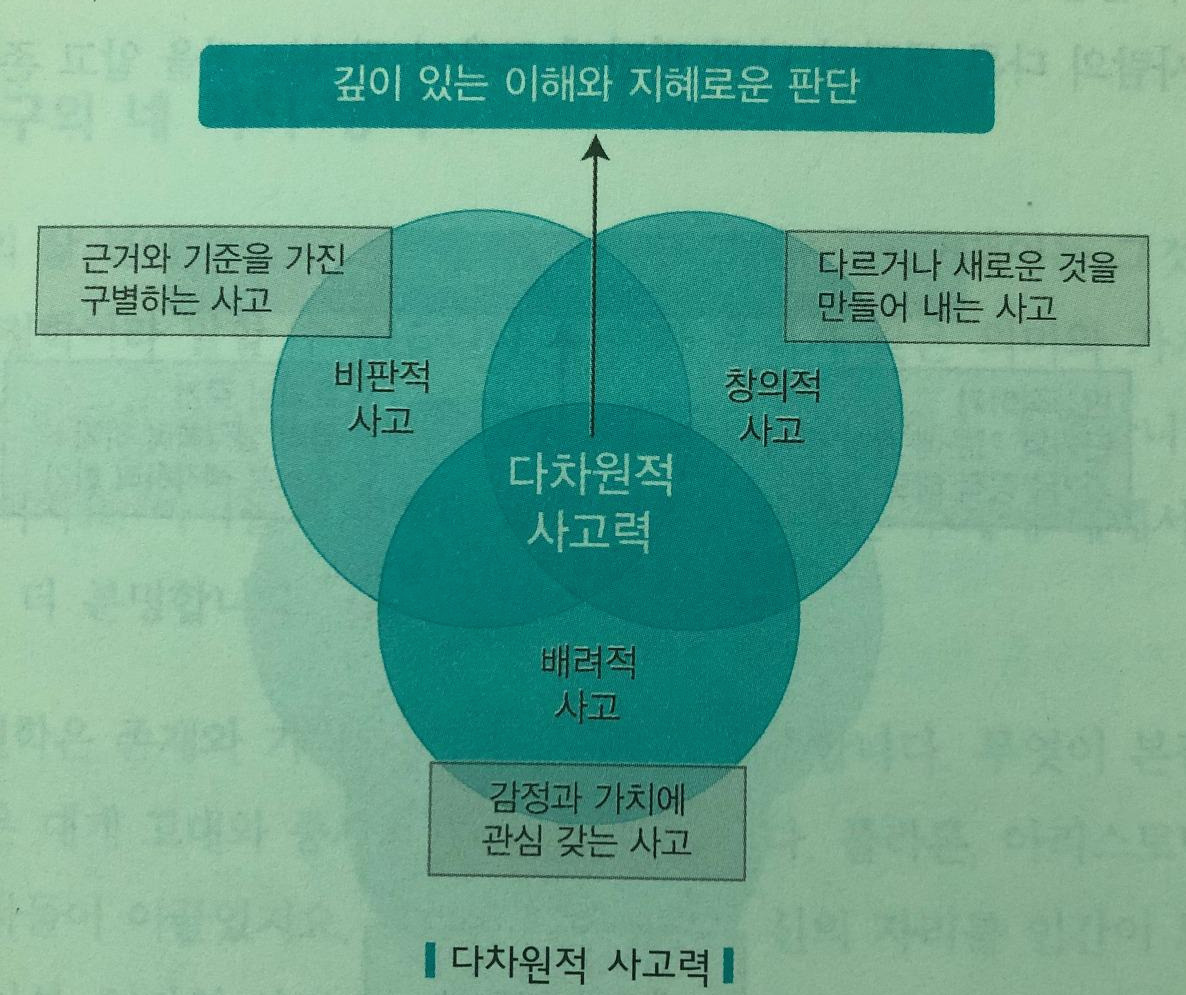 대부분 영역에서 이 세가지 사고가 발휘된다. 한 쪽만 지나치게 강조하면 제대로 된 해결을 못할 떄가 많다. 매튜립맨은 우리 모두가 Adomirable life(경탄할 만한 삶)을 살 수 있다고 말하면서 우리 삶의 여러가지 문제(Aporia) 앞에서 제대로 생각하고, 각자 처한 특수한 맥락 속에서이 세 가지 사고(비판적, 창의적, 배려적)를 잘 어우러져 가도록 생각 훈련을 어릴 적부터 해보자고 제안한다.