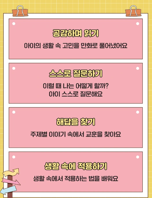솔직히 아쉬운 부분도 좀 있지만, (이야기 선정에 있어서 탈무드와 이솝이야기만 찾았다는 점, 아이들 수준에 대한 출판사와의 관점 차이 등) 이 책의 가치는 아이들에게 질문을 던지고 답이 정해지지 않았다는 것, 아주 뻔한 이야기를 전하고 있지 않다는 것입니다. 이 책은 철학적 질문을 던지고 정답을 주지 않습니다. 아이들과 대화하면서 찾아가야 합니다. 각자 처한 상황에 따라 그 답은 다를 것입니다. 그래서 어른들과의 대화를 통해 자신의 처지에서 가장 나은 답을 찾아가는 과정을 경험하길 바랍니다. 여러 가지 맥락을 파악하면서 고민하고 생각해보는 경험, 그것을 말과 글로 표현해보는 과정이 아이들에게 꼭 필요합니다. 정답찾기에 익숙해지지 않도록 말랑말랑한 철학 대화를 함께 해보시길 바래요. 특별히, 10세 이하의 어린이들과의 철학적 질문이 궁금하다면 그 과정에 대한 감을 알고 싶다면 추천합니다.
