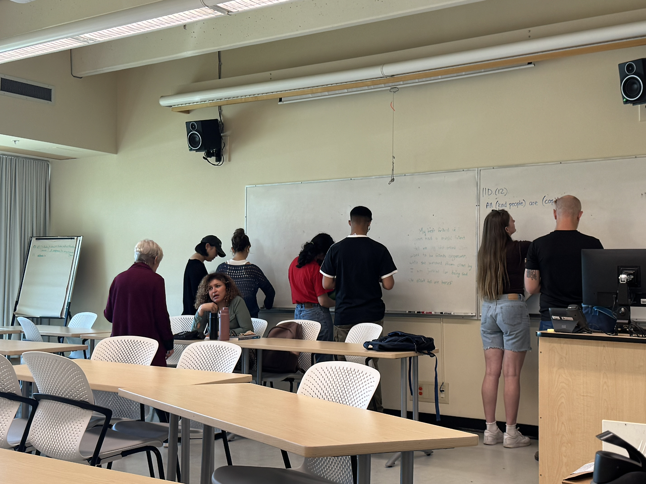 그래서 잠시 여름학기의 수업일 지라도 서로의 이름을 기억했으면 한다고 수잔은 언급하며, 매시간 수업에 참여하는 학생들의 이름을 자기가 먼저 외우고 학생들끼리도 외우라고 한다. 자원하는 한 학생이 수업에 참여한 학생들의 이름을 불러준다. (내 이름도 기억해주었다.) 모두 진지하게, 그리고 따스한 마음으로 함께 이름을 불러주었다.