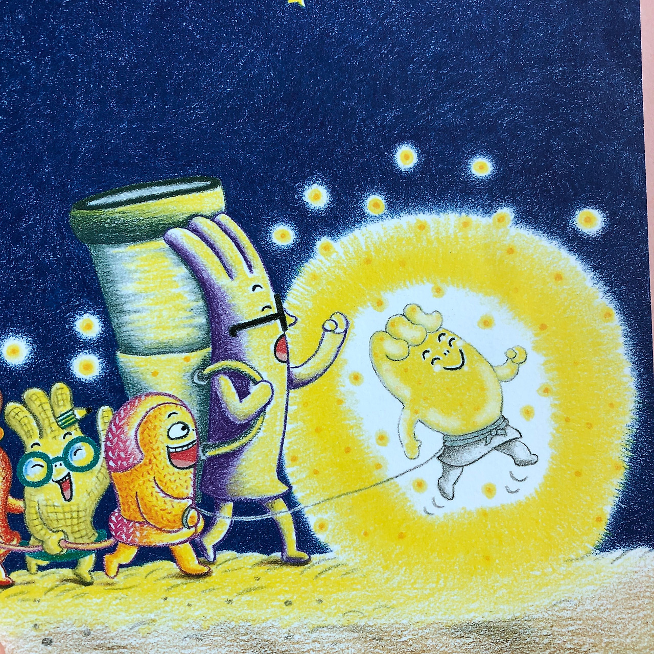 비닐장갑은 가벼워서 날라가기 쉽고 얇아서 구멍나기 쉽다. 그래서 어두운 밤 깊은 숲속에 들어가는 것이 두려웠다. 내가 튼튼하고 질긴 고무장갑이었더라면 얼마나 좋았을까, 라는 생각을 했을지도 모른다. 하지만 비닐장갑이어서 구덩이에 빠지지 않았고, 비닐장갑이어서 반딧불이를 품고 구조대를 데리고 올 수 있었다. 자신의 약점이 강점이 되는 순간들이다. 그렇게 약점이 강점이 되는 것은 '용기'를 냈던 순간이 있었기 때문이다. 오늘 어린이들과 용기에 대해 이야기하면서 자신이 할 수 있는 것과 할 수 없는 것, 그리고 용기를 내야 알게 되는 것이 있고, 용기를 내야 할 때가 있다는 것을 알게 되었다. 어린이들이 말한 용기를 내게 하는 힘은 자신감, 자신에 대한 신뢰, 도전하려는 마음, 좋은 의미, 희망, 좋은 미래, 응원이었다. 그리고 인상적인 것은 용기를 낸다는 것은 사람마다 각각 다르고 그 사람들의 용기로 세상이 재밌어지고, 세상이 좋아질 수 있다는 점이었다. 적절한 순간에 용기를 내어 멋진 세상을 세워가는 생각탐험대가 되길 응원한다!
