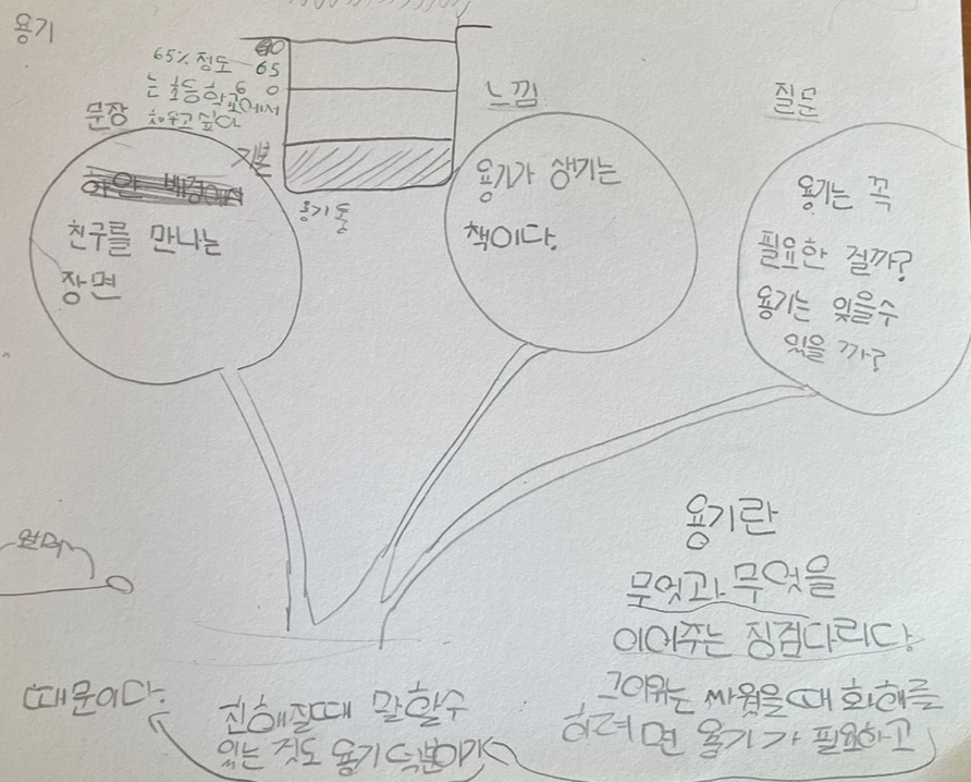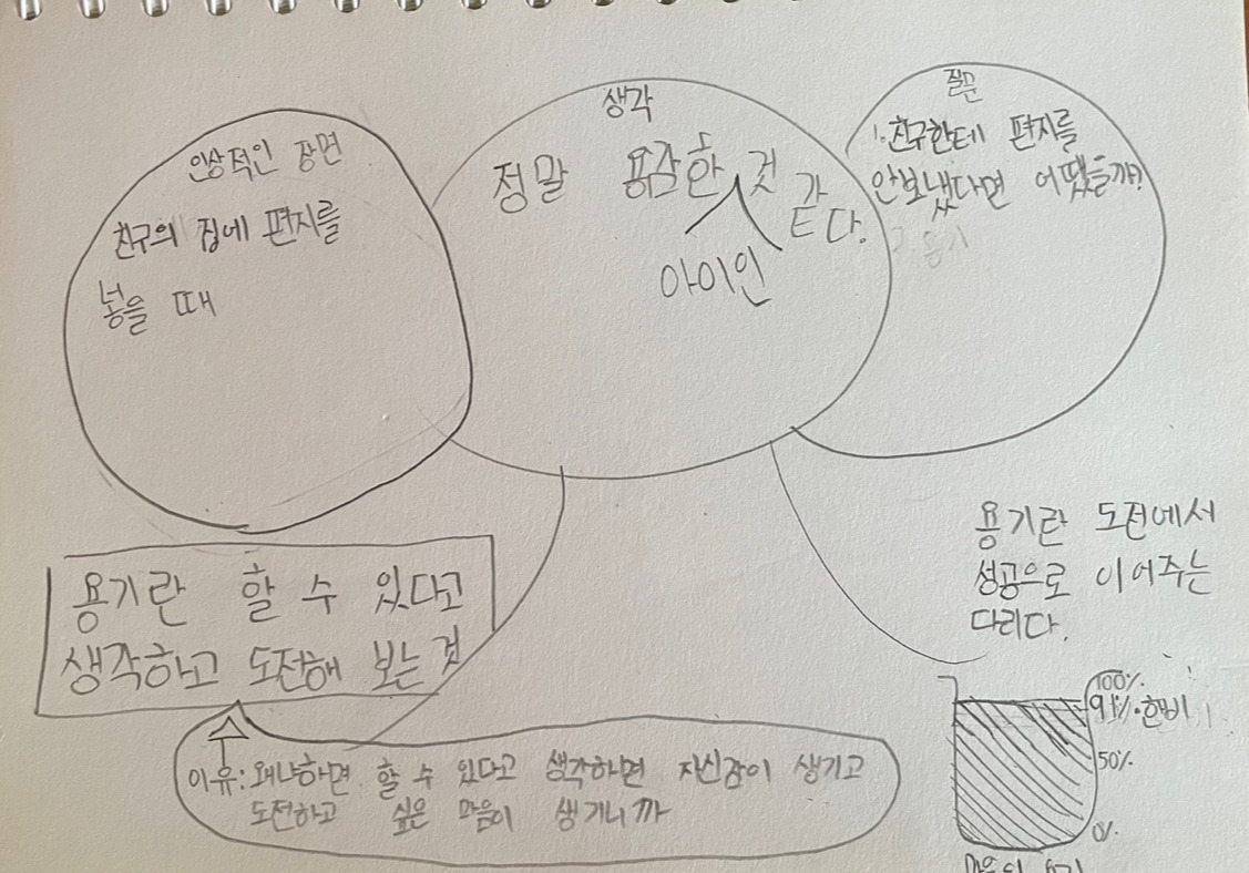 - 용기가 무엇인지 한 번 생각해보고 적어보자. 그렇게 생각한 이유도 함께 말해보자.
